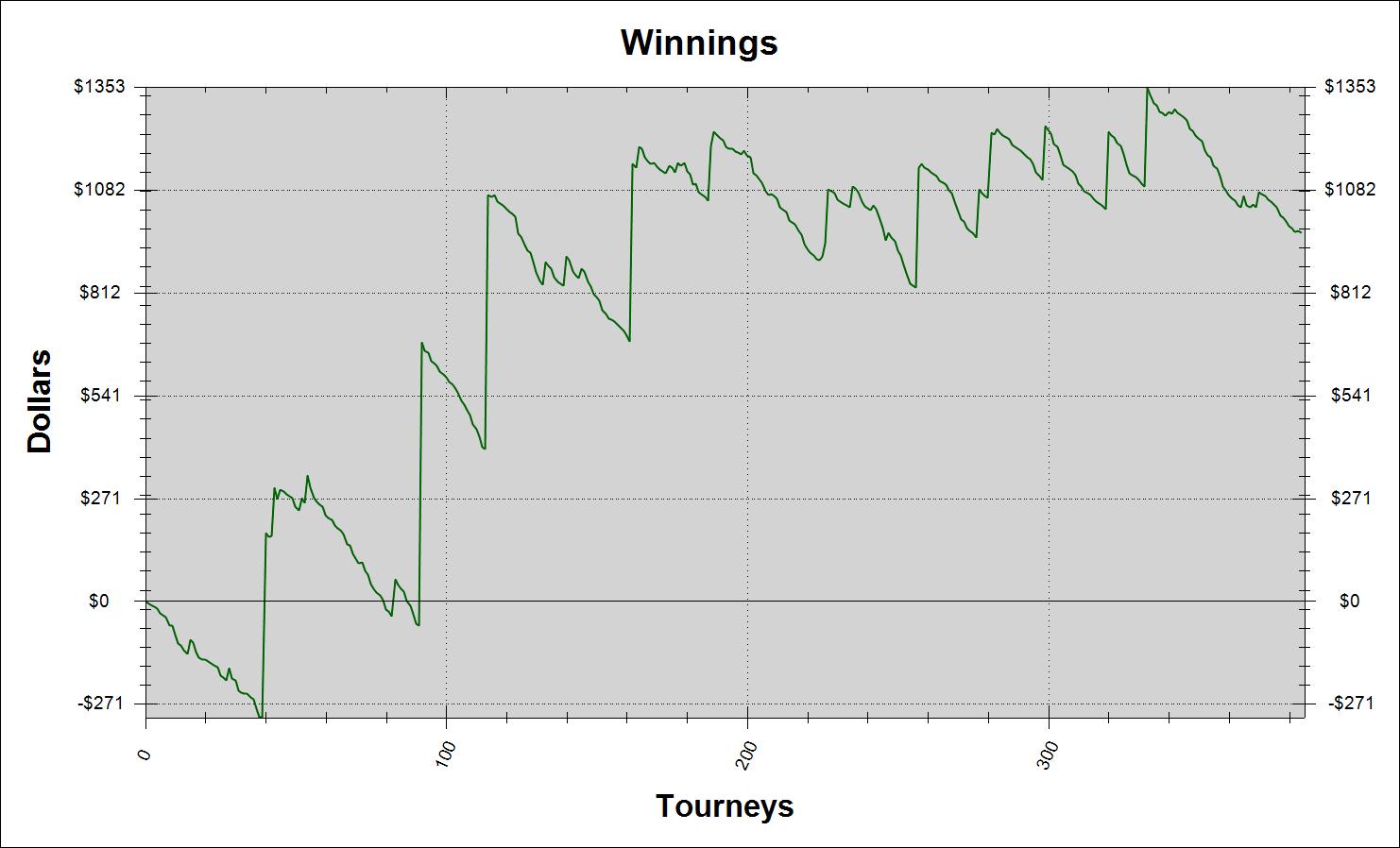 Зовут меня Влад, мне 22 года, живу в городе Липецк. Решил завести небольшой дневничек для более простого контроля над тем что я делаю в покере. Играть буду РАШ на 135чел за 4$. Играю иго уже больше месяца ша 600 туров держу рой около 80%. Хочется попробовать 11-ый лимит, но из-за постоянных кэшаутов не получается...да и пока 50к деревянных в месяц мне хватает) Цель до конца года набить 1,5-2к. График прилагается. Бр 800$ сегодня плюсанул 250$. После кэшаутов оставляю мин 600$. Последний раз редактировалось bagzik 08 янв 2012, 18:36, всего редактировалось 28 раз(а).