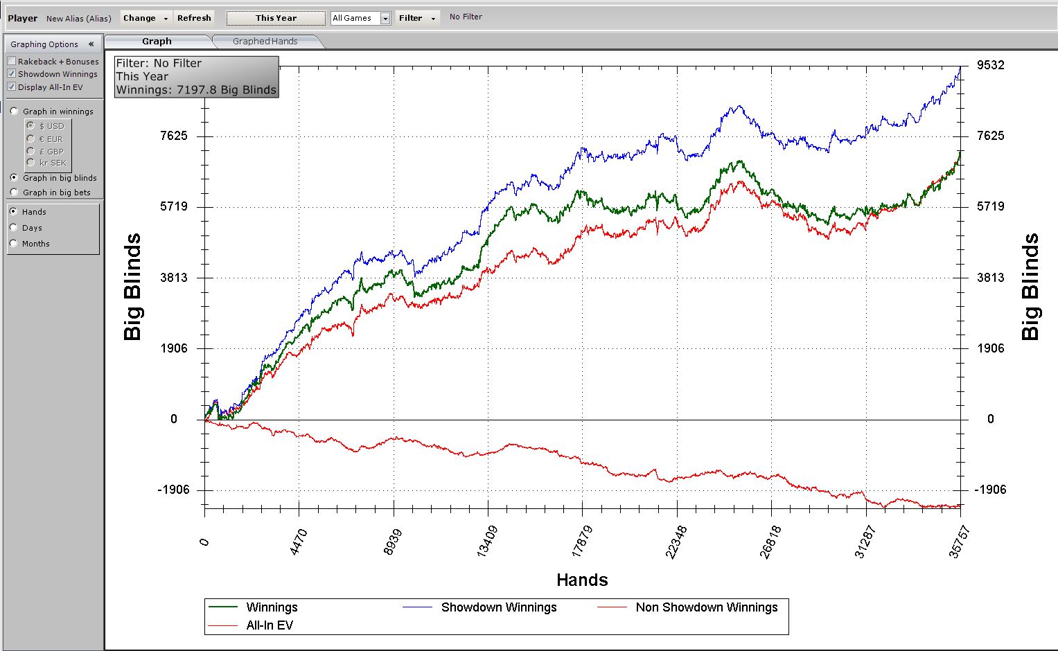 Итак немного о прошедшем годе: К маю я подошел в упор к нл200, но у гсч были другие планы на мой счет, в итоге 2 месяца я откатал в небольшой минус, с учетом расходов в реале (мы как раз переезжали на новую квартиру) о Тайланде уже не могло быть и речи, в итоге поехали довольно бюджетно отдыхать в Севастополь.В августе мой банкролл опустился до отметки в 3.5к и я решил поучаствовать в бэккинг проекте, под которым катал довольно успешно всю осень на нл200, ну и потихоньку паралельно ростил свой бр, в целом осень прошла довольно продуктивно, и если бы не мое транжирство в реале (только беговая дорожка обошлась в 1к), я бы уже в середине ноября играл от себя нл200... В январе произошло событие (завалился бухой и как потом оказалось под наркотой хозяин квартиры с криками: "выметайтесь!"), после которого было принято решение переехать в Донецк на постоянку, собсно я к этому решению итак шел, но жена была против, а так можно даже сказать он мне посодействовал Живем щас в квартире у матери, из плюсов конечно то что платить за квартиру не нужно, да и квартира 3х комнатная так что не тесно. Из минусов то что "Живем щас в квартире у матери"... Пока буду придерживаться стратегии "сидеть на жопе ровно" и до осени никуда съезжать не будем.На данный момент банкролл составляет 8.8к, при 10к перехожу на нл200. Графики: Последний раз редактировалось Yaroslav_M 19 мар 2012, 16:37, всего редактировалось 5 раз(а).
