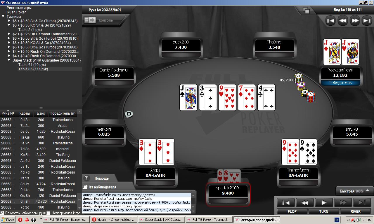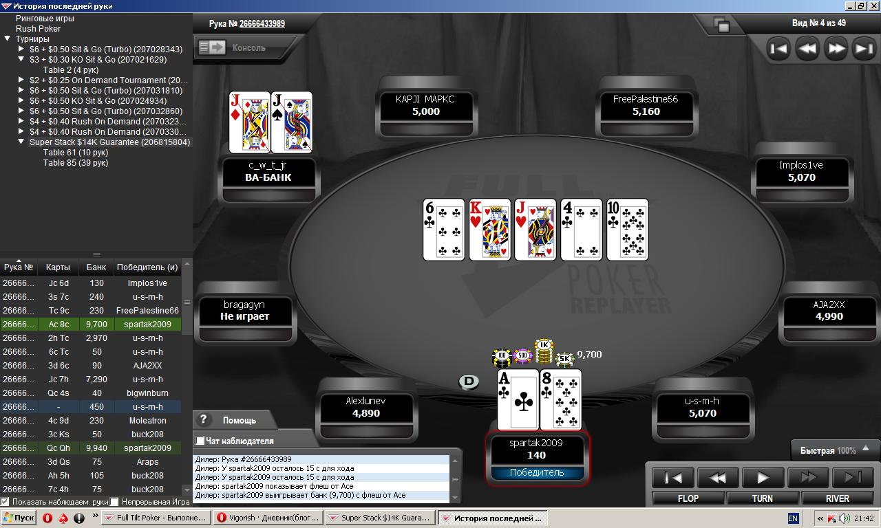 Офигеть - одна из первых раздач, у меня флеш от туза и мне его платит по полной сет вальтов - удвоился! :-D :-D :-D