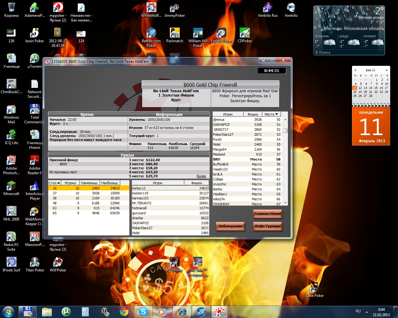 Редстар турнир 600$ вход за золотую фишку, я 58-й выгрышь 1,68$