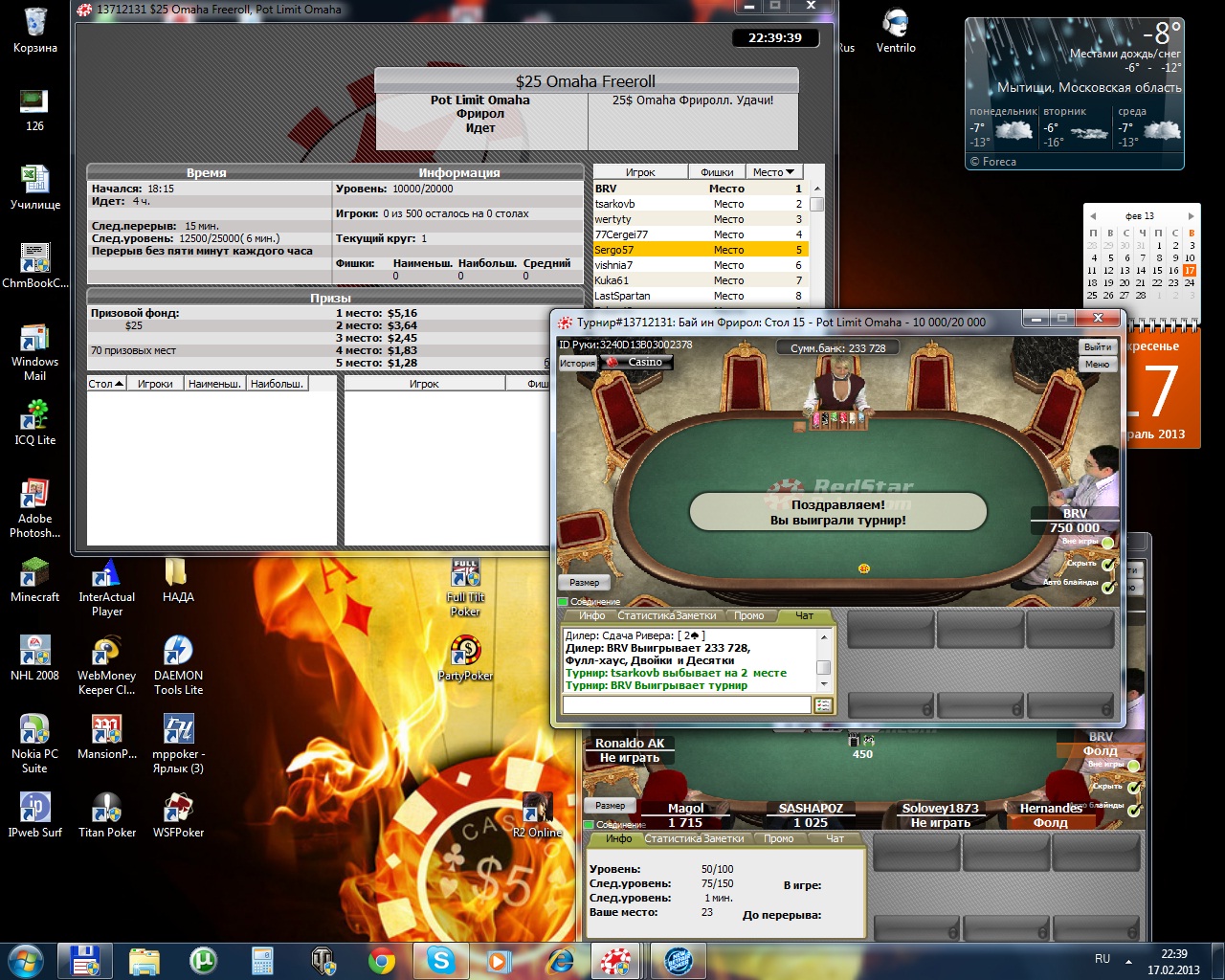 Фришка Омаха на редстаре, Блиннннн... я только 5-й +1,28 доллара к банку . На один турнир больше сыграю в чемпионате)))