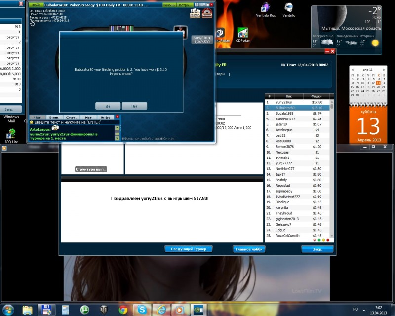 Не совсем "НОРМАЛЬНЫ" результат, но хоть что то , после череды невыразительных турниров, с минимальными выигрышами