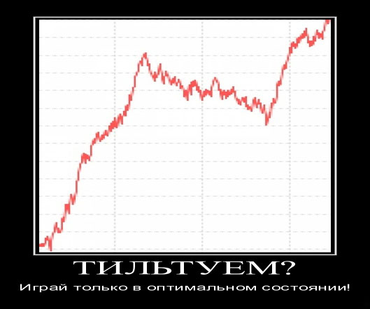 Ну да, не фонтан Хотя уже на половине этой дистанции предчуствовал что "рисую" дракона.До последнего момента не верилось что голова у него получится, но видимо это было предрешено и я снова упал, хотя уже не так сильно как в начале месяца. Тилт? Даунстрик? Может и так, но более точно это состояние можно обозначить как "переиграл". В конце месяца я лег в больницу (где сейчас и нахожусь), немного подлечить нос перед отъездом. Простенькая операция + 10 дней отдыха в условиях, приближенных к санаторным. Соответственно наилучшая возможность покатать. 4 дня прошли великолепно, на 5-й пропала концентрация, многие действия стали выполняться автоматически и часто без анализа доп.статов оппов Вот тут "морда дракона" и нарисовалась... Месяц пройден, движемся дальше Планы на октябрь: - Переход на 15$ лимит fifty50, хотя бы частичный (по наличию фишней за столом) - Открытая покерная лига на PS, естественно только 1-й дивизион (би 5$). Обязан отыграть 29 турниров (31 - 1день в дороге - 1день полюбому пропущу, человек же) - Создание позитивного бэкинг-имиджа Мало ли какие саты затащу в будущем, легче будет распродаться. Начну с фонда Massive+Village (да и старзовские фпп через призовые билеты замечательно в $ напрямую конвертируются)- Перевод части бр на 888, отыгрыш там серии 5$ фризаутов, желательно дипов, предварительный сбор хх обязателен - Отъезд в Белгород! Последний раз редактировалось filinz 21 окт 2011, 22:09, всего редактировалось 1 раз.
