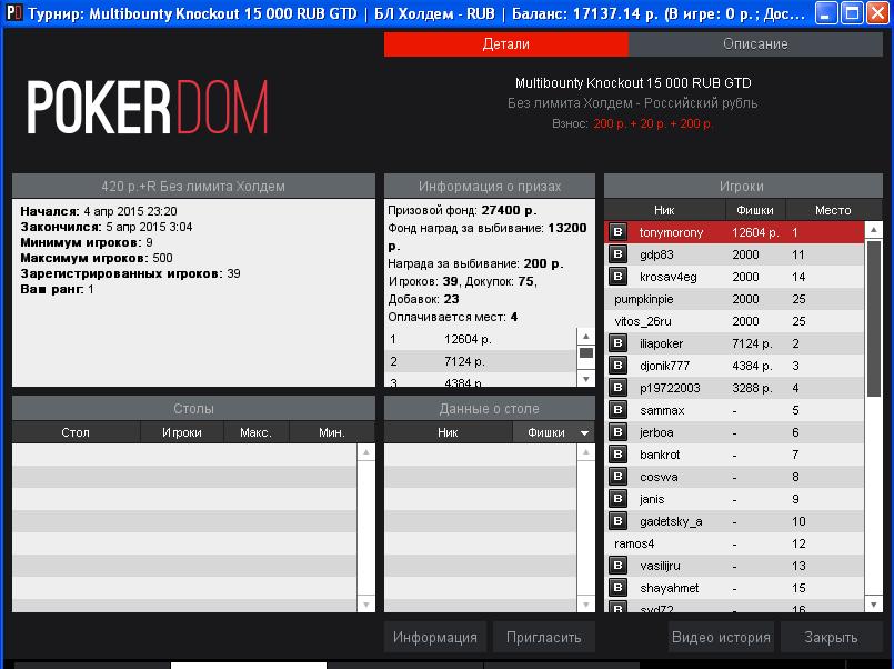 ← Вернуться: Многостоловые турниры