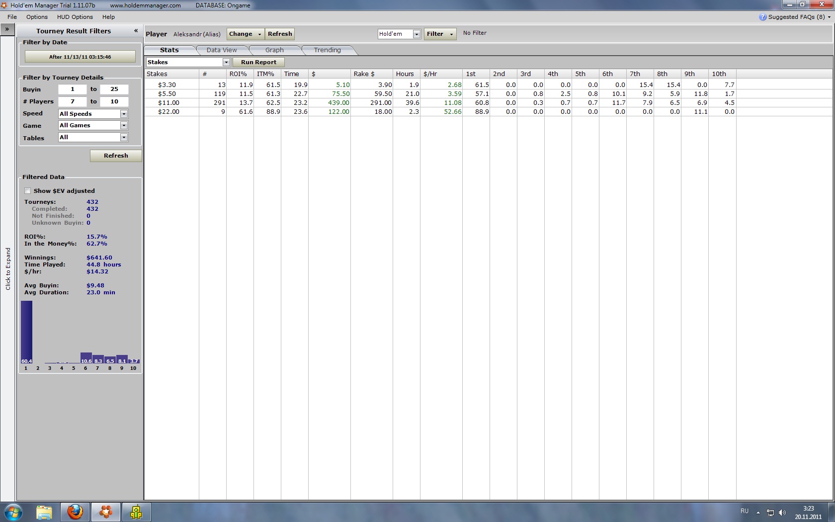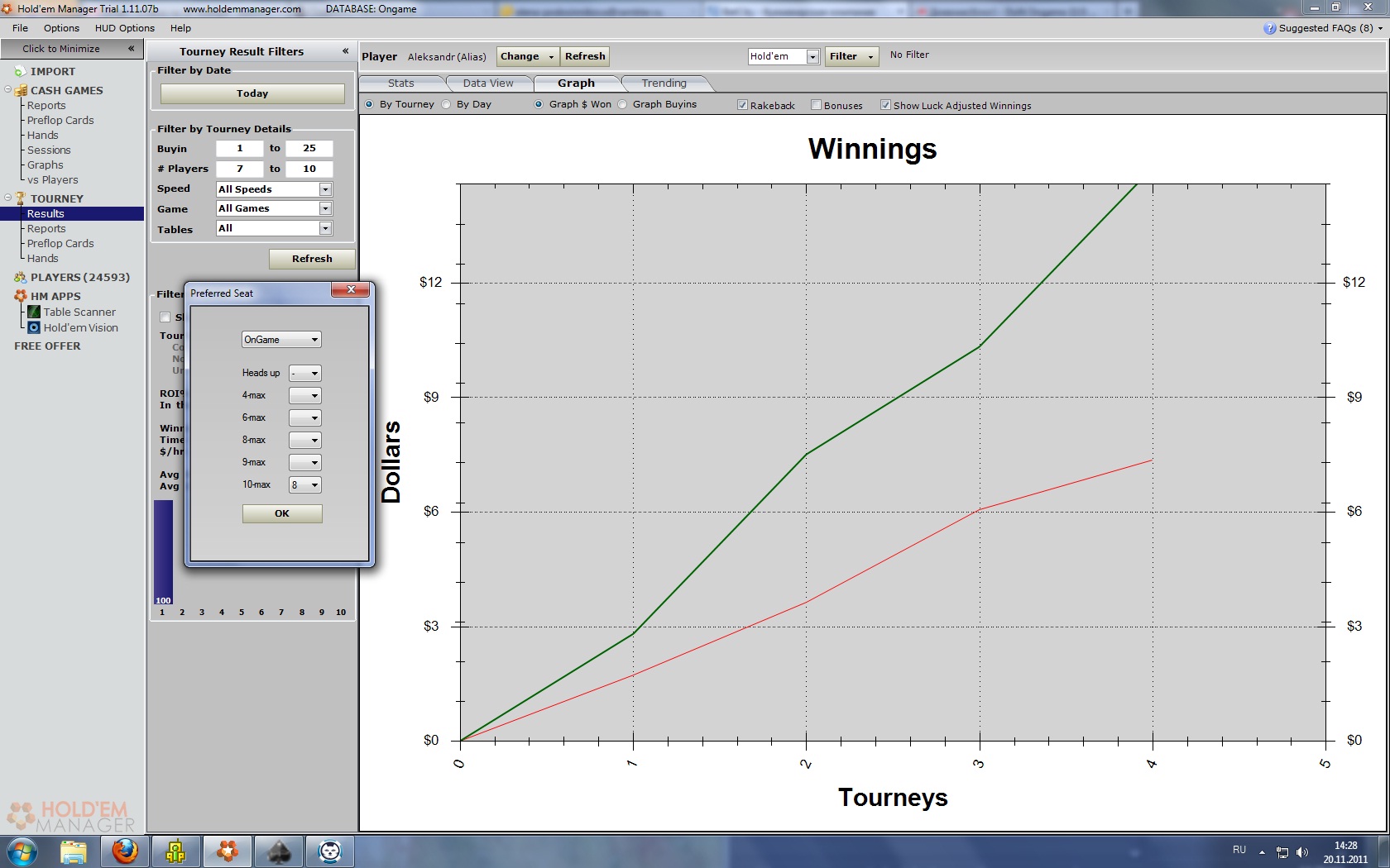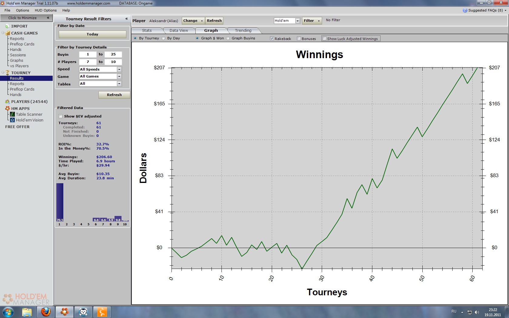 Спасибо большое за ссылко! всегда очень интересно почитать записи хорошего и неординарного игрока. Блог прочитал только на половину,скачал видео лимито 5,5 и 11. По просмотру получил больше удовольствия, чем раньше. Очень много общего, многие мувы понятны без обьяснений с его стороны. С некоторыми вещами можно поспорить,но думаю что это будет лишено смысла. Видео все таки было записанно довольно давно. Покер постоянно меняется, приходят другие люди и с этим приходится не только мирится, но и принимать это. К тому же игра проходит на старзах,а там и структура блайндов и игра несколько другая. В любом случае видео и блог Минтона - это лучшее что я пока видел по доН. Человек вызывает огромное уважение. Правда я не представляю как можно играть без ХМ..но каждому свое. Так же в блоге увидел имена Натнал и Гнат 777 и решил провести разветку их видео на покерстратеджи...о видео девушки могу сказать одно - если по ним учится люди с ранних лимитов на ПС то я очень рад...не понимаю как она в свое время добралась до лимитов 50+...на мой взгляд рыба рыбой . Гнат 777 другая история - думаю что человек имеет четкое понимание о игре, но присутствует некоторая самоуверенность и вальяжность, что в принципе понятно,обьяснимо и простительно. Человек, как и Минтон,например, знает как играть, умеет добиться своего за столом. Отмечу, что смотрел видео только лимитов 5,5 и 11. выше смотреть не вижу смысла так как сам там не играю и не хочу бежать впереди паровоза.теперь о своей игре Игровой день вчера начался не очень. Поначалу складывалось такое впечатление, что каждый рег 11 лимита считал своим долгом вскрыть мой пуш очень быстро ушел в минус 50 у.е пришлось резко аджастится прямо во время сессии (меня спектры и прочее), что я не очень люблю. В итоге к 20 игре вышел в ноль, затем не любимый боковой тренд графика и уже перед сном рывок в плюс. Как итог 68 сыгранных ДоН и +72 бакса проффита...отомщенный и довольный пошел спать Подбираюсь к предпоследнему ВиП уровню и бонус отбит на 60 процентов. все это так же хорошо. Но по прежнему играю по сравнению с другими регами мало. Для меня много за день - это 75 матчей)). надо стремится хотя бы к 100 ибо бонусы,РБ и рейкгонки никто не отменял... Цель на сегодня отработать 75 турниров |