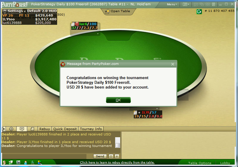 Каждый раз жду фриролла от Vigorish на Покер Старс с большим нетерпением и желанием показать хороший покер в кругу друзей. И в этот раз не получилось. Сет 3-к оппонента (итоговое 2-е место) и моя неспособность сбросить 2-е пары оставили меня за бортом призёров. Ну чтож :-| . В следующий раз.