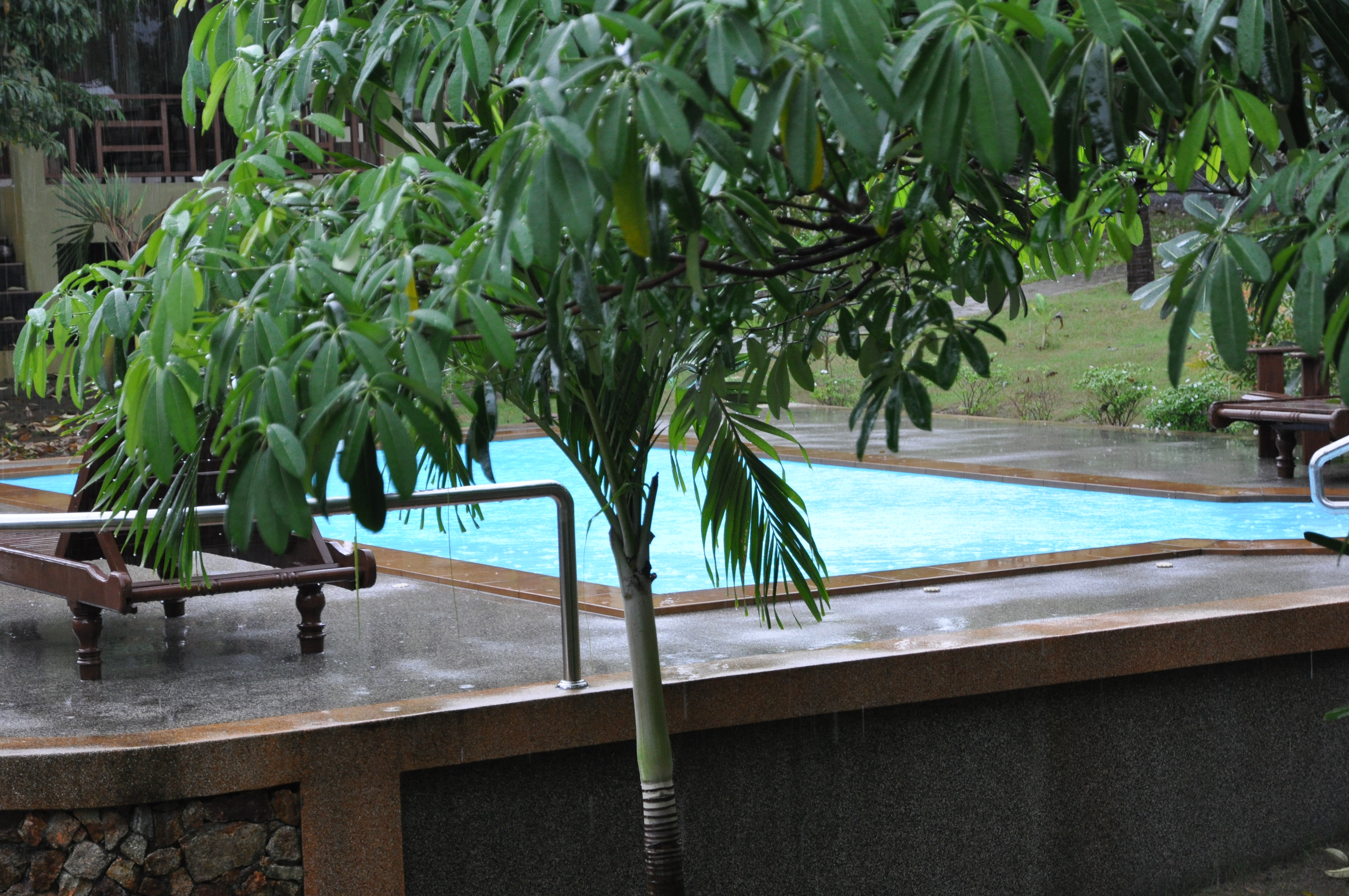 У меня сегодня точное повторение вчерашнего дня, на улице мокро, дождь так и не переставал идти. Бывает конечно 1-2 раза за день успокоится на час, не более и опять поливает. Вот фото сделанное с крыльца нашего съемного домика, дальше него я еще не выходила сегодня :-)