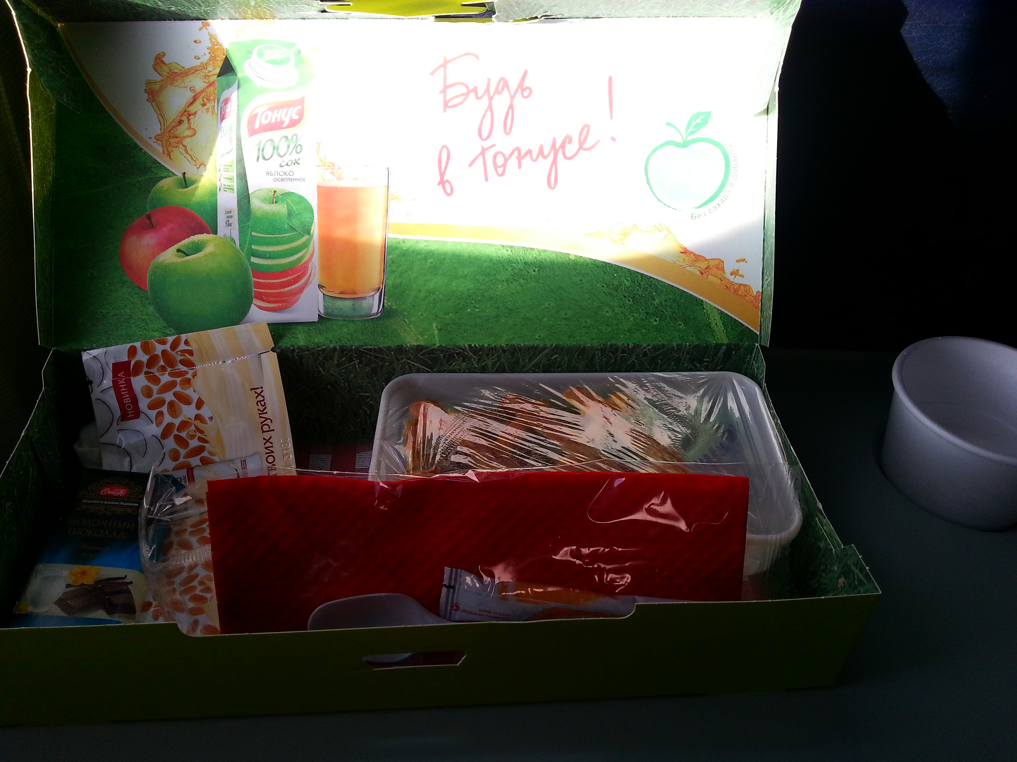 Кормили правда не очень, маленькая шоколадка, пирог и чай, ну еще 2 раза сок разливали в пути: