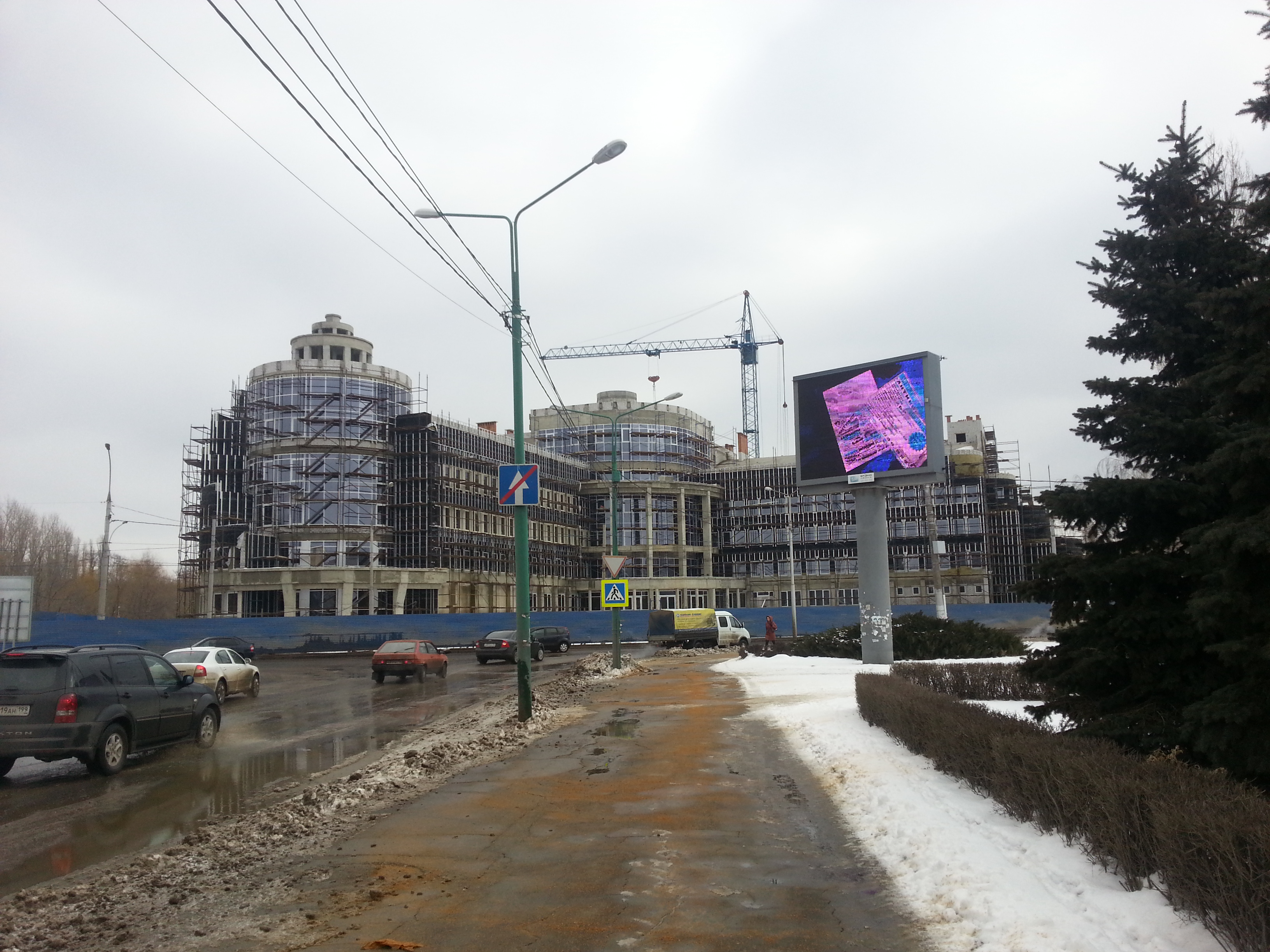 - За этим строящимся зданием отель Турист