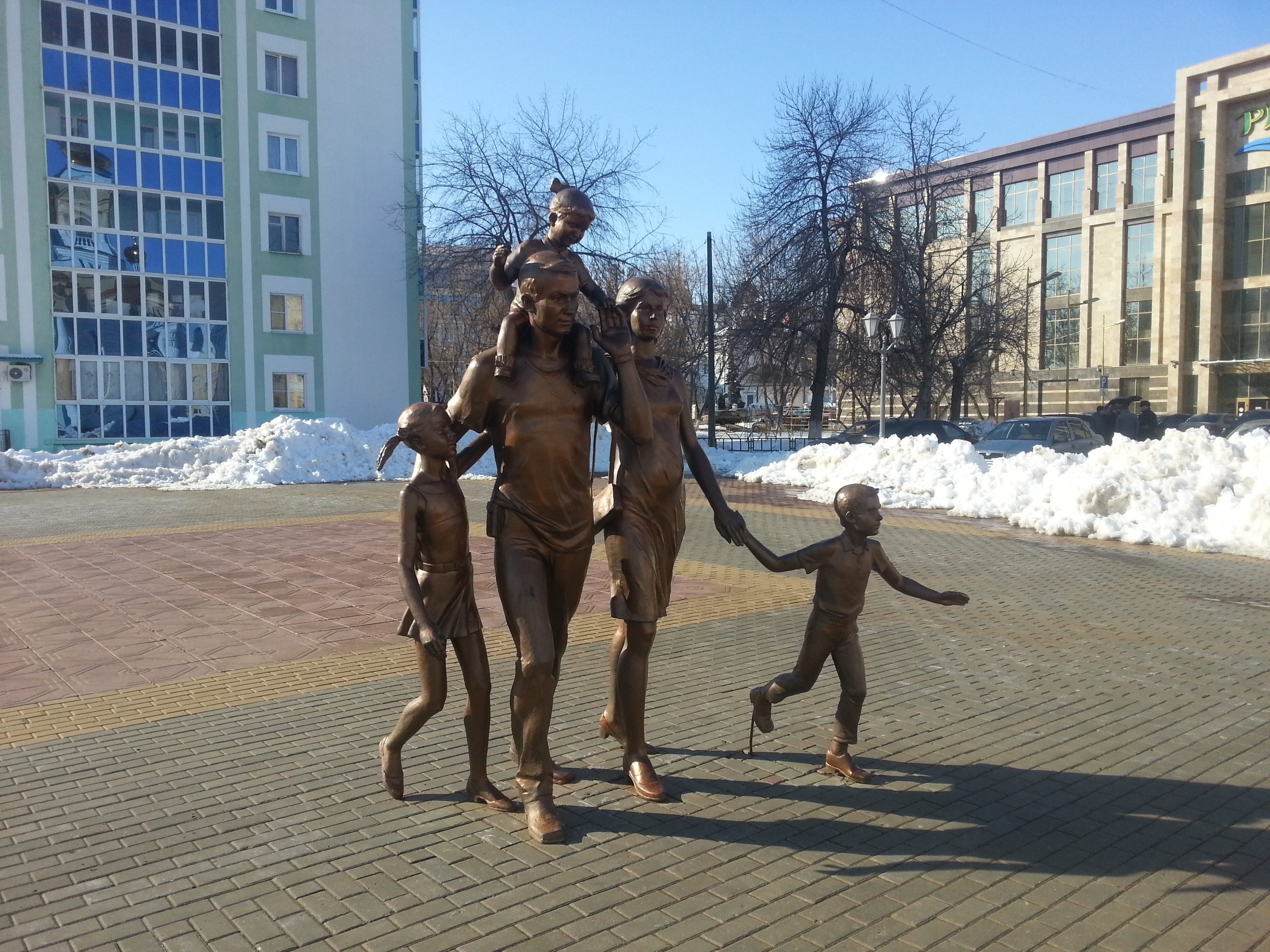 - Памятник семье, они идут в церковь...