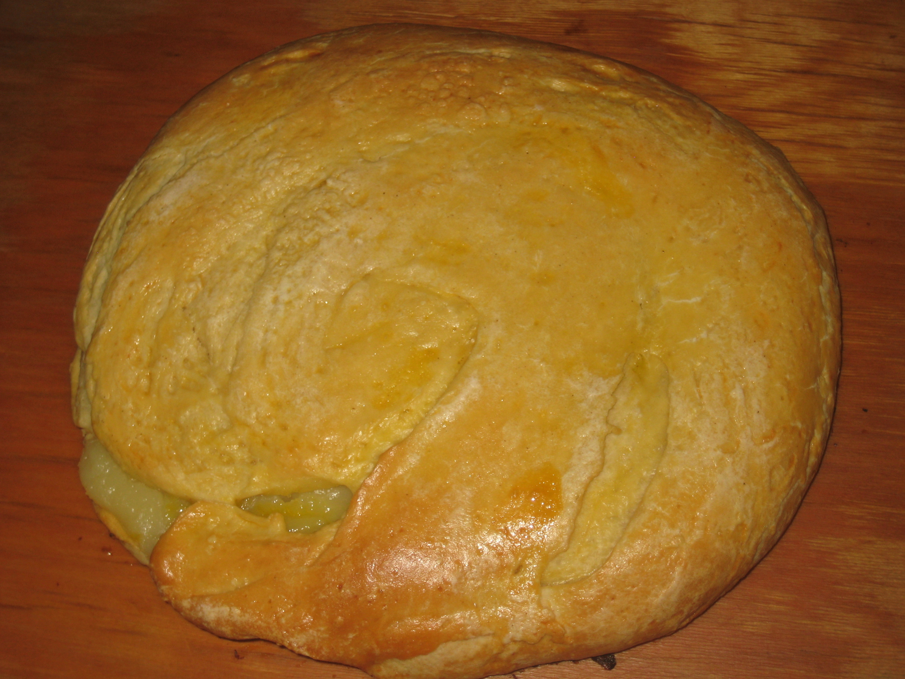 Внутри крем - по типу заварного, только без добавления масла и муки (яйцо, сахар, крахмал, молоко). Да и сам пирог/пирожное делается весело: тесто (тоже дрожжевое) раскатывается в 2 пласта, каждый пласт смазывается сливочным маслом, затем заворачивается в рулет, который в свою очередь скручивается в "улитку" :-D После на несколько часов в холодильник, затем "улитки" снова раскатываешь в пласты, по нижнему равномерно распределяешь крем, накрываешь верхним с "обхватом", и выпекаешь :))