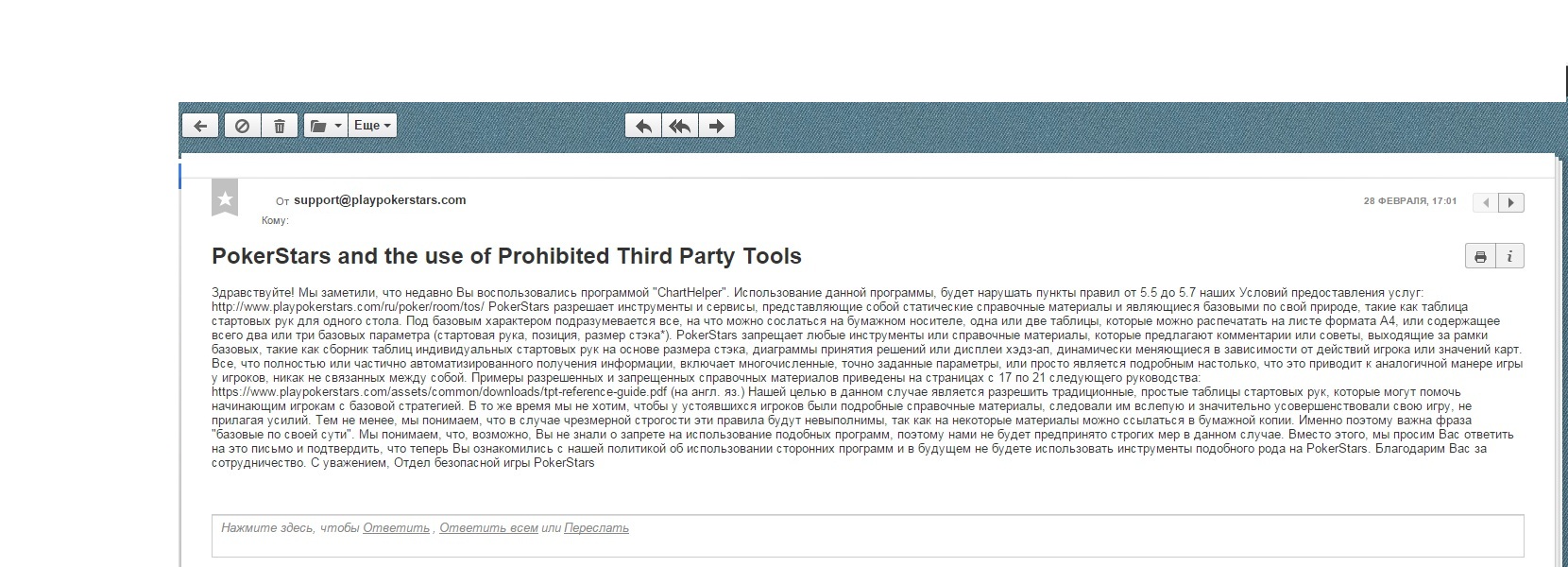 И тут же сразу само письмо пришло