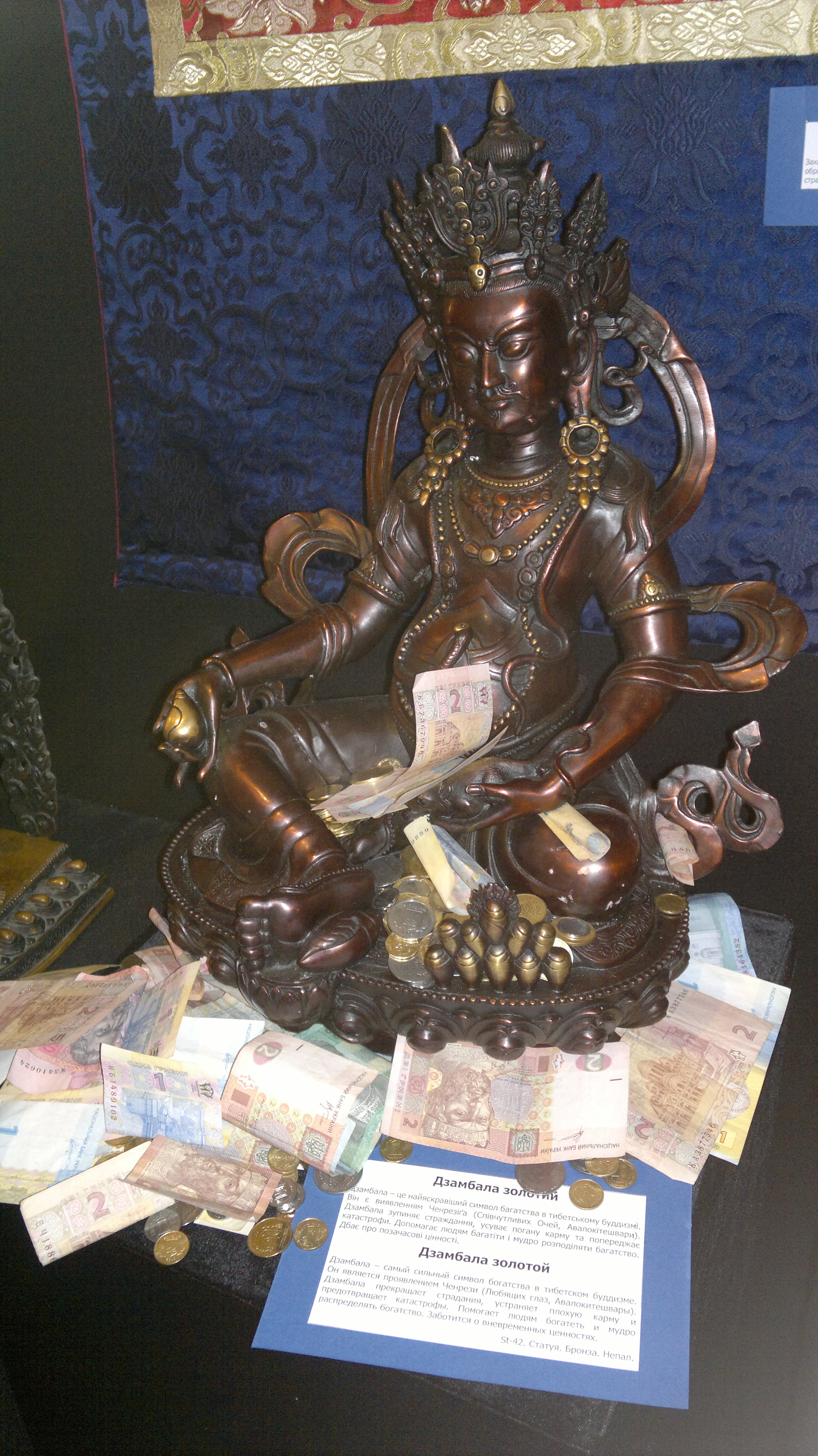 Погладел на экспонаты и остался, в целом, доволен, что сходил. она хоть и небольшая была, но я когда-то с удовольствием читал Джатаки и вообще философию буддизма нахожу очень интересной и во многом правильной. на месте пара буддистов рассказывала... хз о чём, так как не было желания их слушать, но они вокруг себя собрали бОльшую половину посетителей, которые с интересом внимали их речи. моё же внимание, больше других, привлёк ритуальный кинжал плотней на него засмотрелся и задумался, когда прочитал, что три его грани "отсекают три основные омрачения - гнев, привязанность и глупость". ну и пара фот экспонатов оттуда же, кому интересно: а это на задворках в самом Украинском доме (где выставка проходила) скульпутура. списали её что ли, или не вписалась в дни тибетской культуры, но стояла фактически возле туалетов в хранилище (или как это верно называется?) его бы поместили, а то как-то негоже так с искусством-то...под впечатлением от этого всего пришёл и на ебее торгуюсь за тематическую шмотку Дэн, фильм даже сложно с чем-то сравнить или назвать что-то похожее. Его основной посыл легко понять в конце, но зачем пять, или сколько их там было, сюжетных линий, это всё разделение на разные эпохи - вообще хз. Моё мнение, учитывай, довольно субъективно. Я часто плююсь на фильмы, которые многим понравились и также у меня периодически вызывают восхищение фильмы, которые другим людям как-то вот совсем никак. ну я бы сравнил с Аватаром или Историей Бенжамина Баттона, в том ключе, что фильмы собрали хорошую кассу и отзывы критиков со зрителями, но что первое, что второе, по мне, - полный щит Последний раз редактировалось Katamaran84 11 ноя 2012, 21:55, всего редактировалось 1 раз.