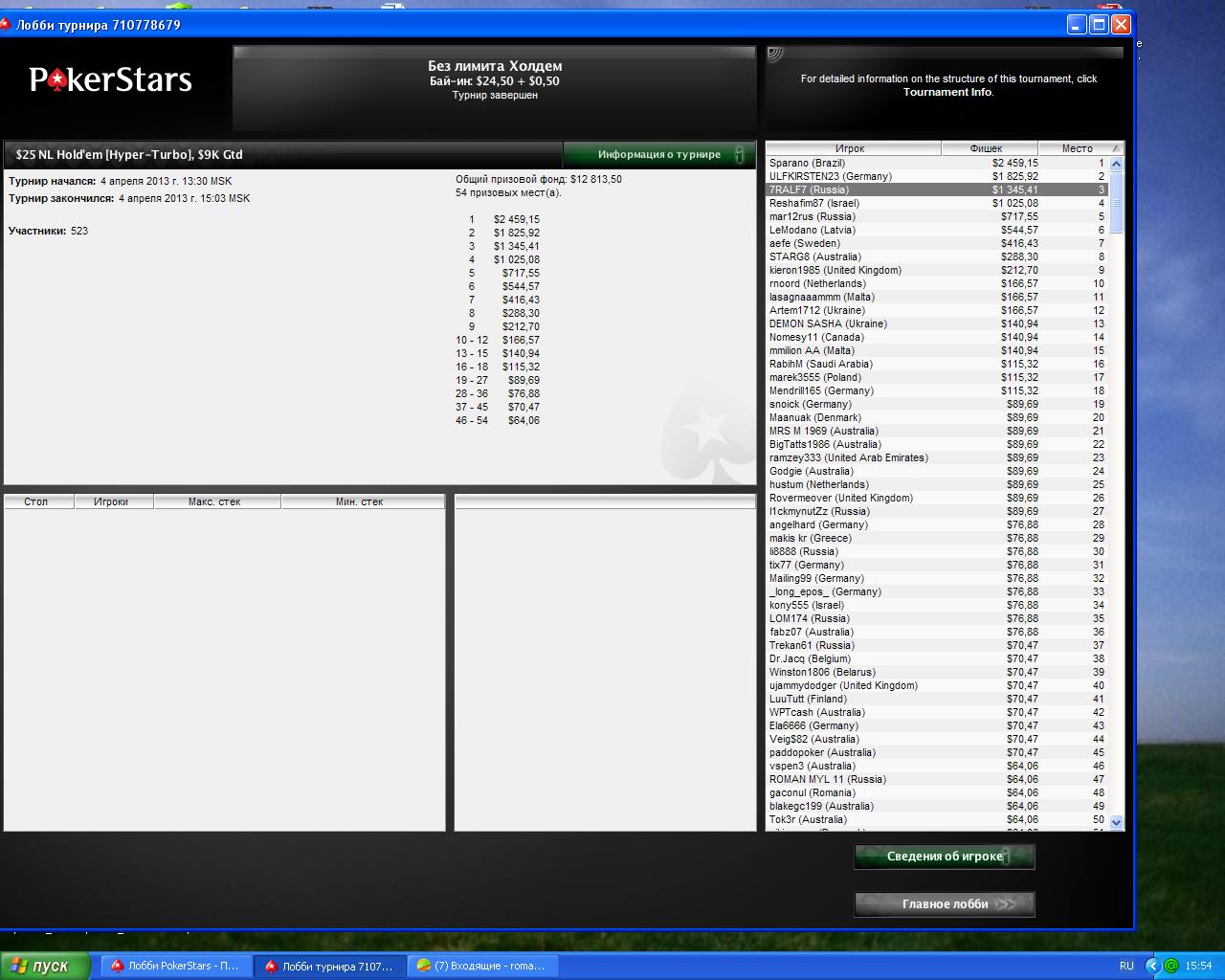 ← Вернуться: Многостоловые турниры
