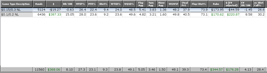 Я начал играть 6 месяцев назад, в конце ноября, закинув 200$ в Hollywood poker и с тех пор ничего оттуда не снимал, а весь рб наоборот закидывал на аккаунт. Начал играть с нл20{readmore}и потихоньку двигался вверх. В среднем отыгрывал 18-20к рук в месяц, потому что параллельно занимался еще и другой работой (над этим сайтом) и прошел весь путь нл10->нл20->нл30>нл50->нл100.