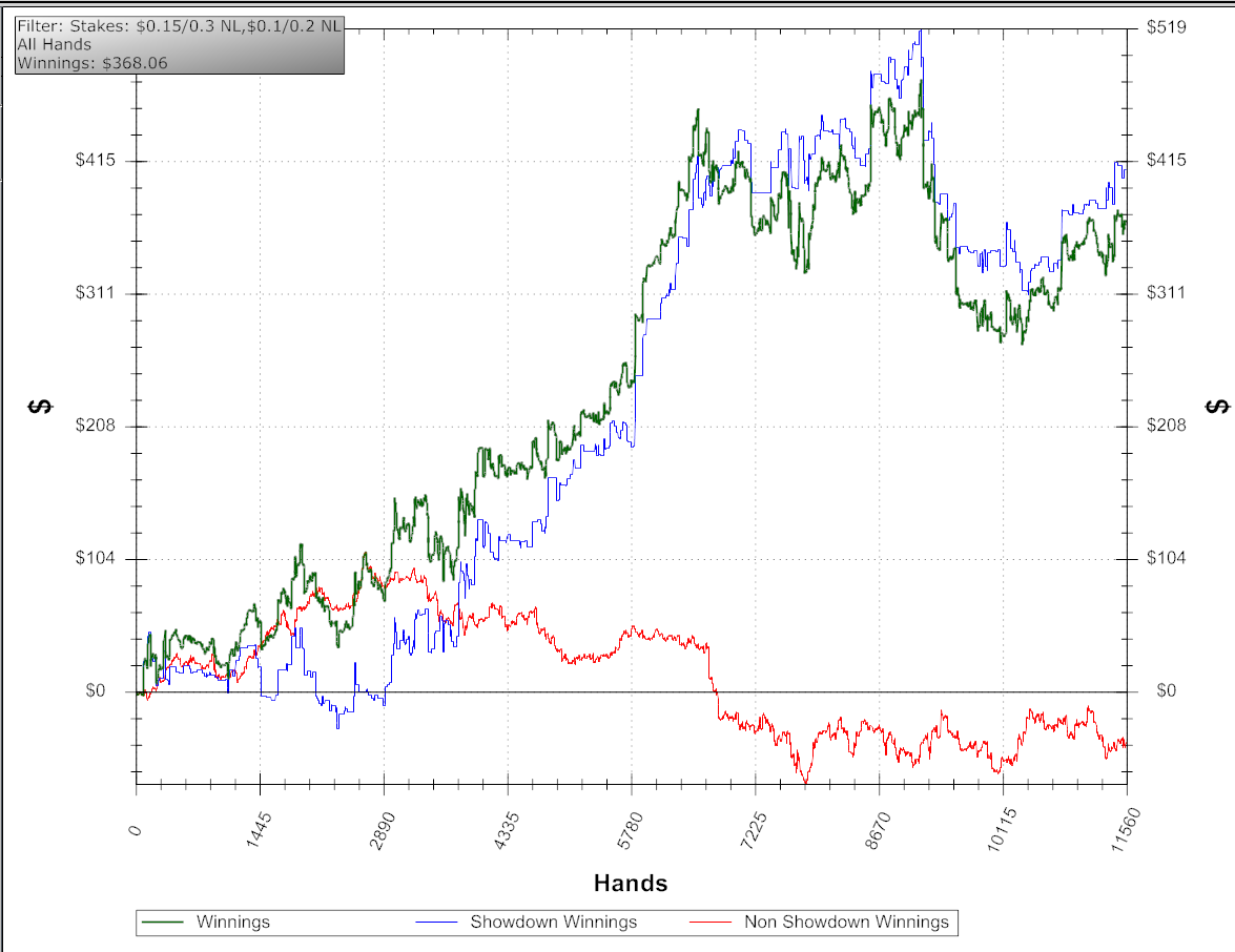 Если про график то смотри по вертикали это его сумма, а по горизонтали сколько рук сыграл