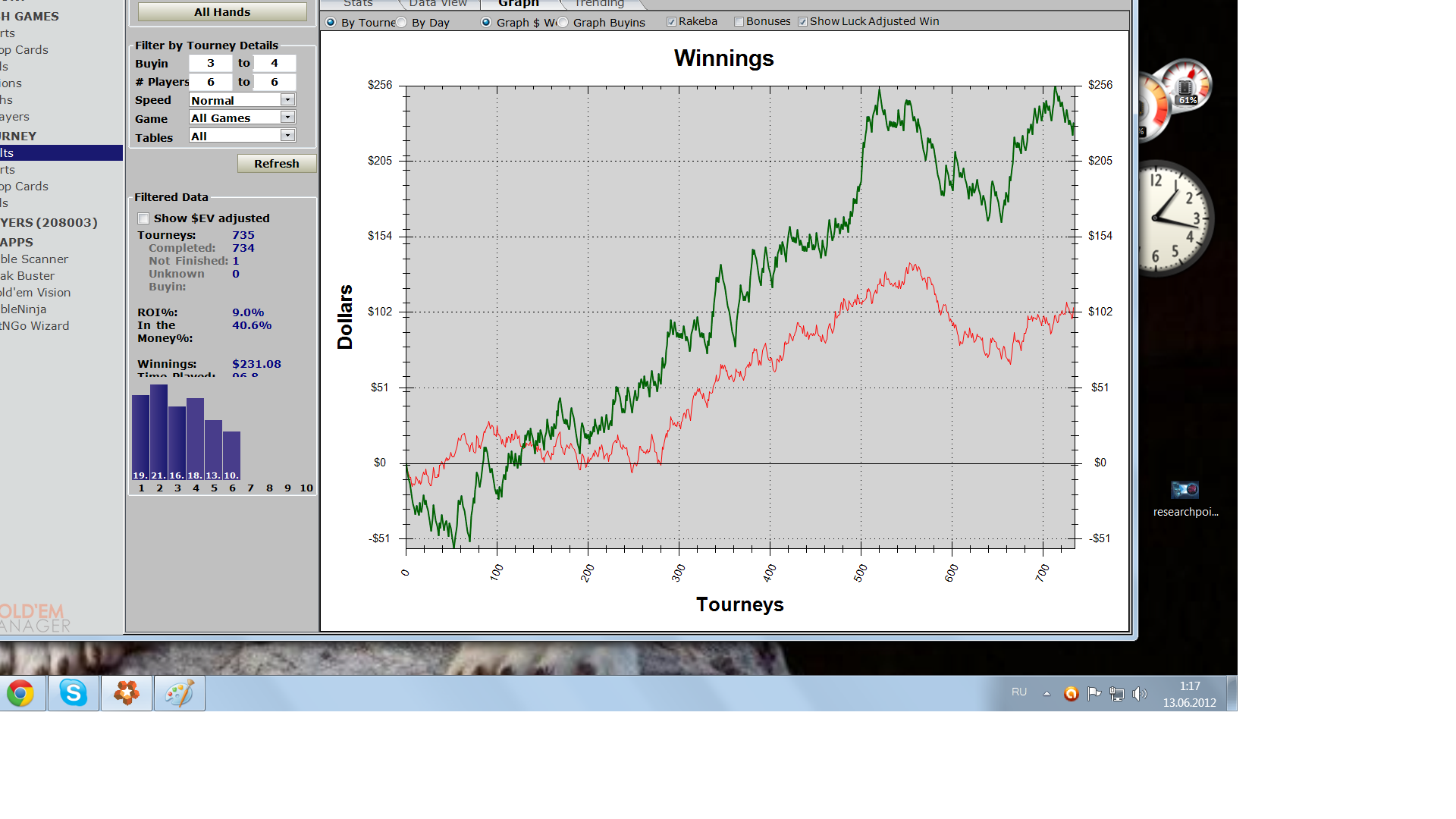 zahodillo:-mich-, я не юзаю статы. На лимитах до 20е включительно чел либо спрыгивает после первой партии либо играет несколько подряд. И всё. Больше его скорее всего уже не увидишь, либо через месяц. На обычных старзах ещё больше народу, да ещё гипертурбо... я хз что там могут дать статы. Я смотрю только в Тшарке плюсовой ли он, чтоб пометить на будущее (на .фр иногда сама рыба сидит ждёт) ну и по первым 10-15 сыгранным рукам смотрю что чел тянет до ривера и, главное, бетсайзинг - на основе этого могу примерно прикидывать чего ждать. Кого и по 7 хай можно вколить, а против кого на минрейз тузов зарывать.