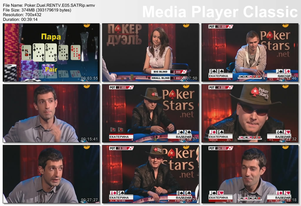 Видео: Windows Media Video 9 700x432 25.00fps 1200Kbps Аудио: Windows Media Audio 44100Hz stereo 128Kbps Длительность: 00:39:14 Сайт проекта - http://poker-duel.ru/