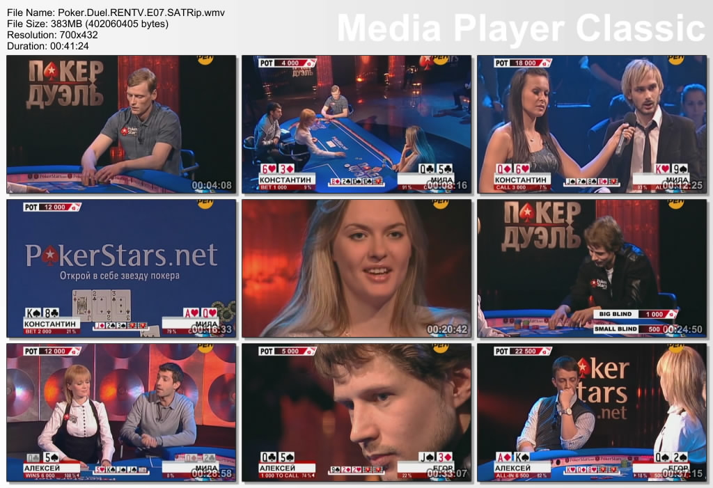 Видео: Windows Media Video 9 700x432 25.00fps 1159Kbps Аудио: Windows Media Audio 44100Hz stereo 128Kbps Длительность: 00:41:24 Сайт проекта - http://poker-duel.ru/