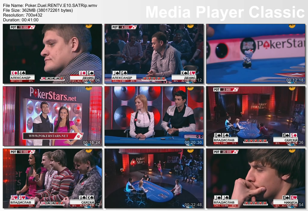Видео: Windows Media Video 9 700x432 25.00fps 1100Kbps Аудио: Windows Media Audio 44100Hz stereo 128Kbps Длительность: 00:41:00 Сайт проекта - http://poker-duel.ru/
