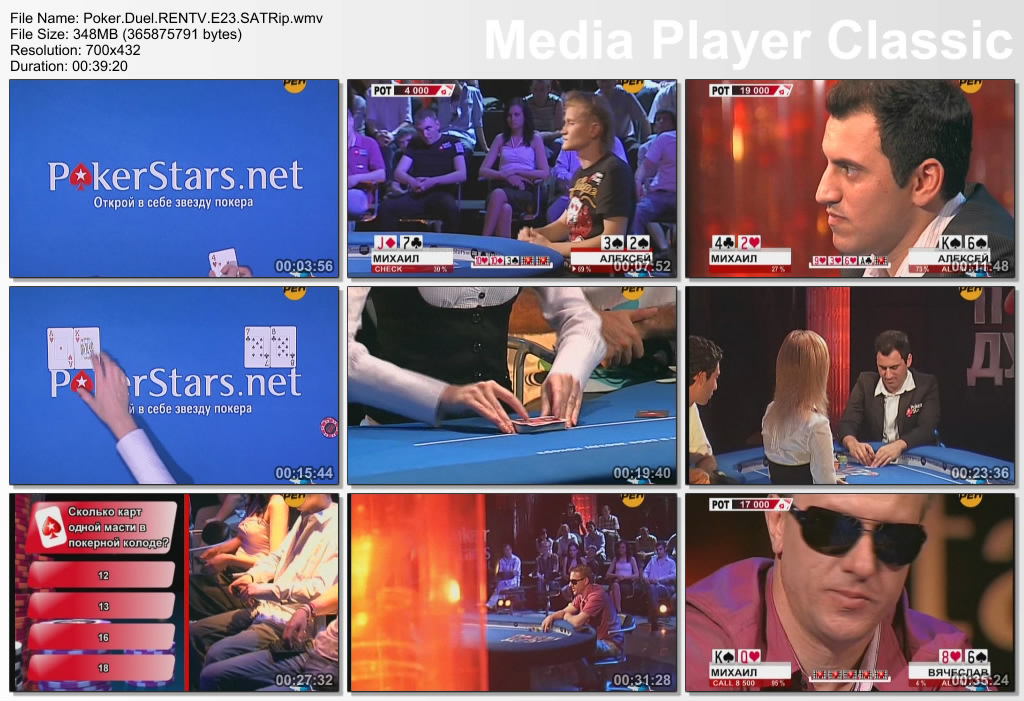 Видео: Windows Media Video 9 700x432 25.00fps 1100Kbps Аудио: Windows Media Audio 44100Hz stereo 128Kbps Длительность: 00:39:20 Сайт проекта - http://poker-duel.ru/