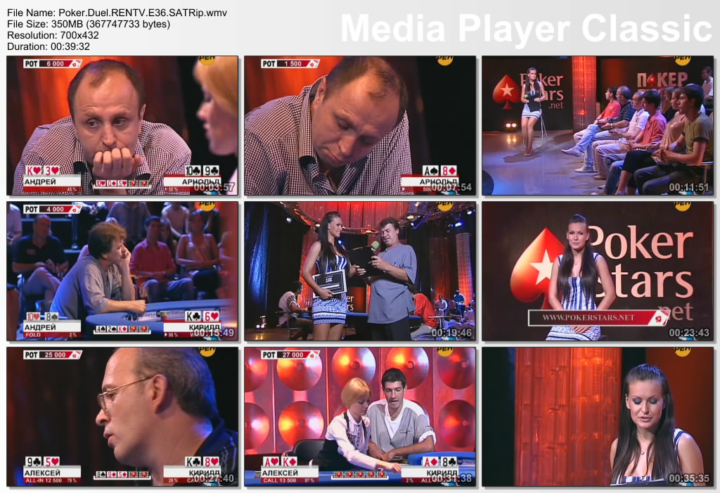 Видео: Windows Media Video 9 700x432 25.00fps 1100Kbps Аудио: Windows Media Audio 44100Hz stereo 128Kbps Длительность: 00:39:32 Сайт проекта - http://poker-duel.ru/