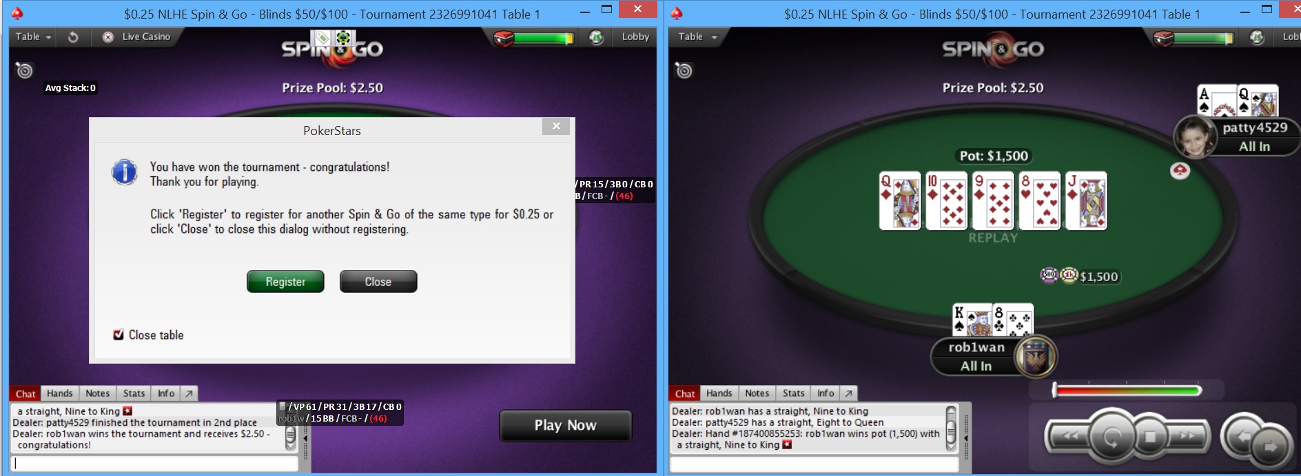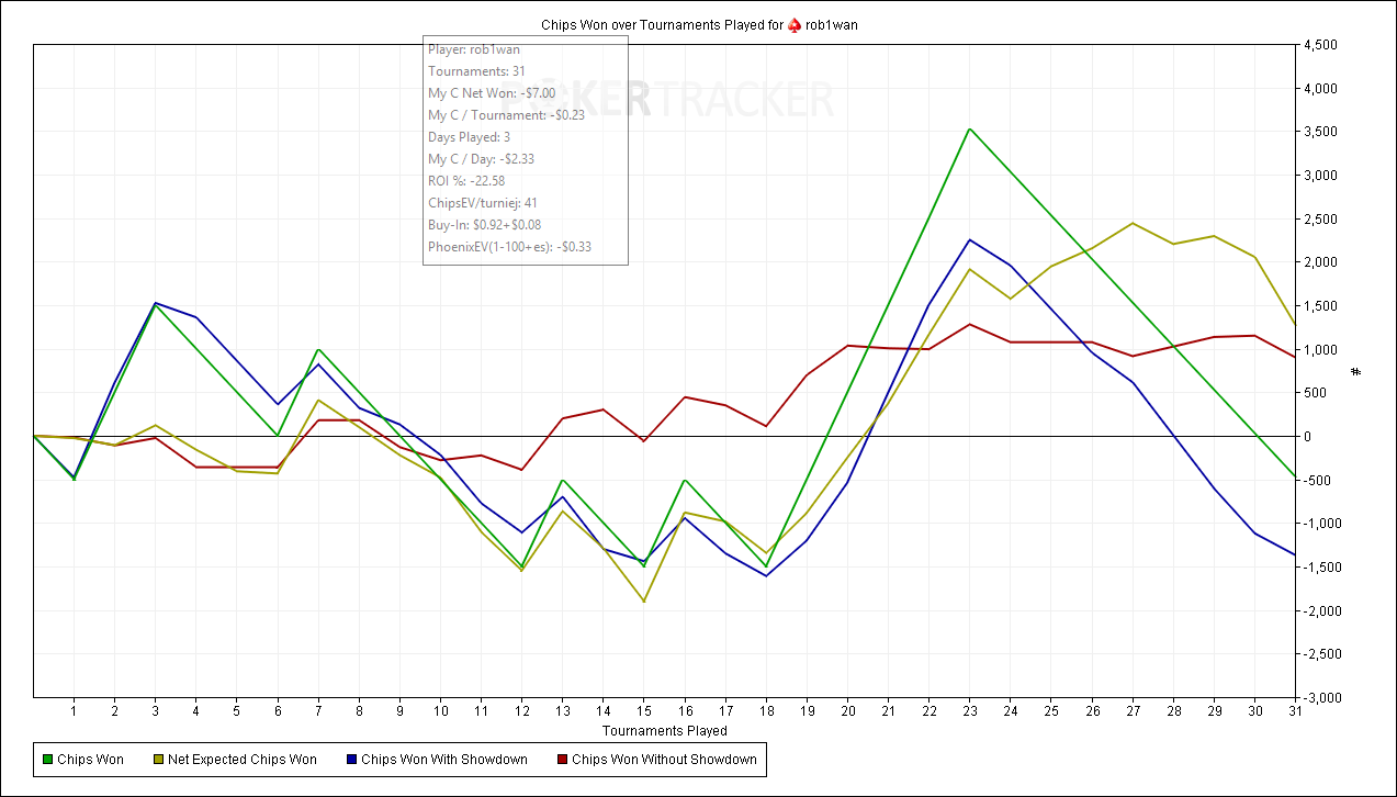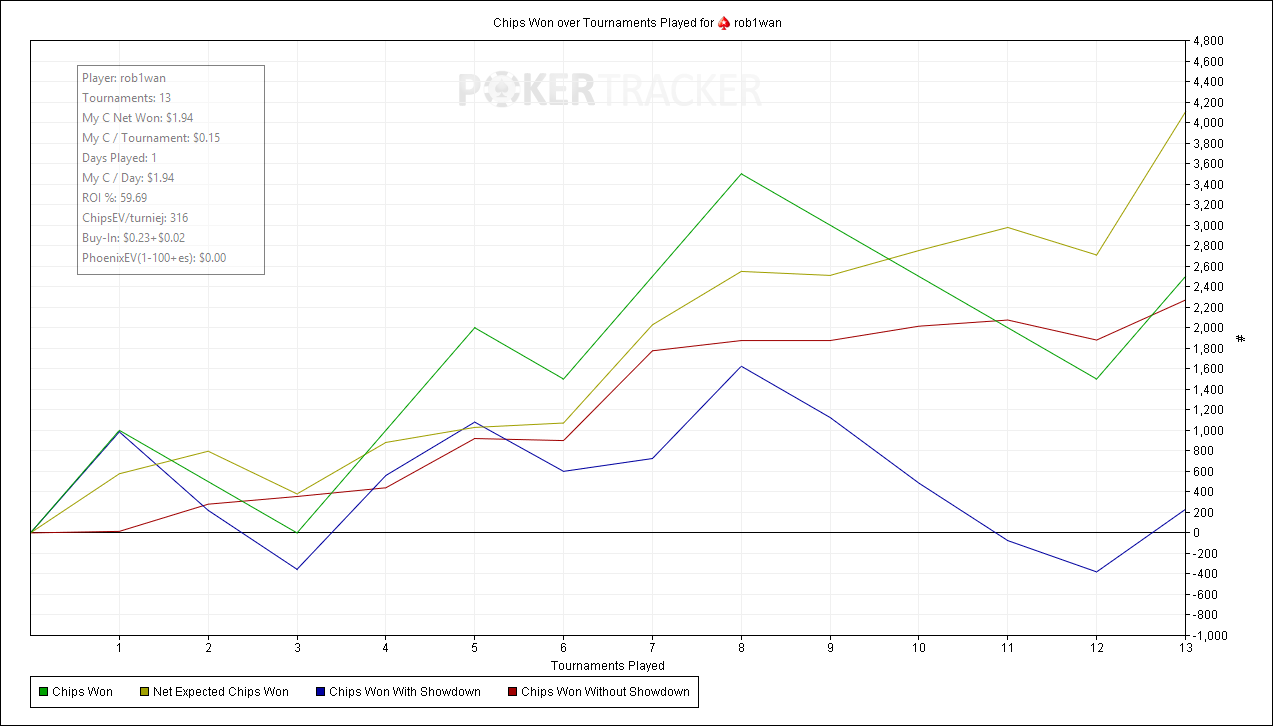 . Не стал регистрироваться на каких-то других ресурсах, потому как для того, чтобы зайти туда зачастую надо включать VPN (бесплатные, которые я сумел найти, очень тормозят, а платные мне пока не позволяет иметь кошелек). Мне это не очень удобно и привычно, поэтому я здесь. В мои намерения входит овладеть общими навыками игры в покер, но конкретно на данный момент в основном интерес в дисциплине Spin & Go. Я занимаюсь покером совсем недавно, самостоятельно. Специализированной литературы особо не читал (какие-то короткие статейки на разных сайтах, в принципе, за неё можно же не считать), терминологией владею слабо, знаний пока тоже не ахти как много. Достаточно уверенно бью четвертаки. В ближайших целях закрепиться на единичках и отыграть там дистанцию хотя бы в тысячу турниров, после чего, если я их побью, попробовать заявиться к кому-нибудь куда-нибудь на обучение или типа того. Так как дальнейшая задача у меня - это заработок минимум 2000$ в месяц, такая штука шикарно бы могла отразиться на моей жизни. Изначально я занимался покером, можно сказать, по 15-40 минут в день (и то не каждый), но в итоге за достаточно короткое время (500-600 турниров) я развился от "ни черта не понимаю" и игры на 0.25 до "кажется, я что-то начал понимать" и игры на 3 лимите Задача ближайшая: 70+ фишек на играемом лимите (трёшки) в ноябре и переход на семерки. Задачи дальнейшие: (февраль-март) достижение пятнадцатого лимита, стабильный доход 1000+ USD (лето) достижение тридцатого лимита, стабильный доход 2000+ USD Буду рад любым советам от знатоков, а так же приглашаю к обсуждению таких же новичков, как я (мало ли). Ну а основное предназначение этой темы - зайти излить душу или запостить какие-то собственные мысли. Последний раз редактировалось robiwan 29 окт 2018, 17:00, всего редактировалось 7 раз(а).