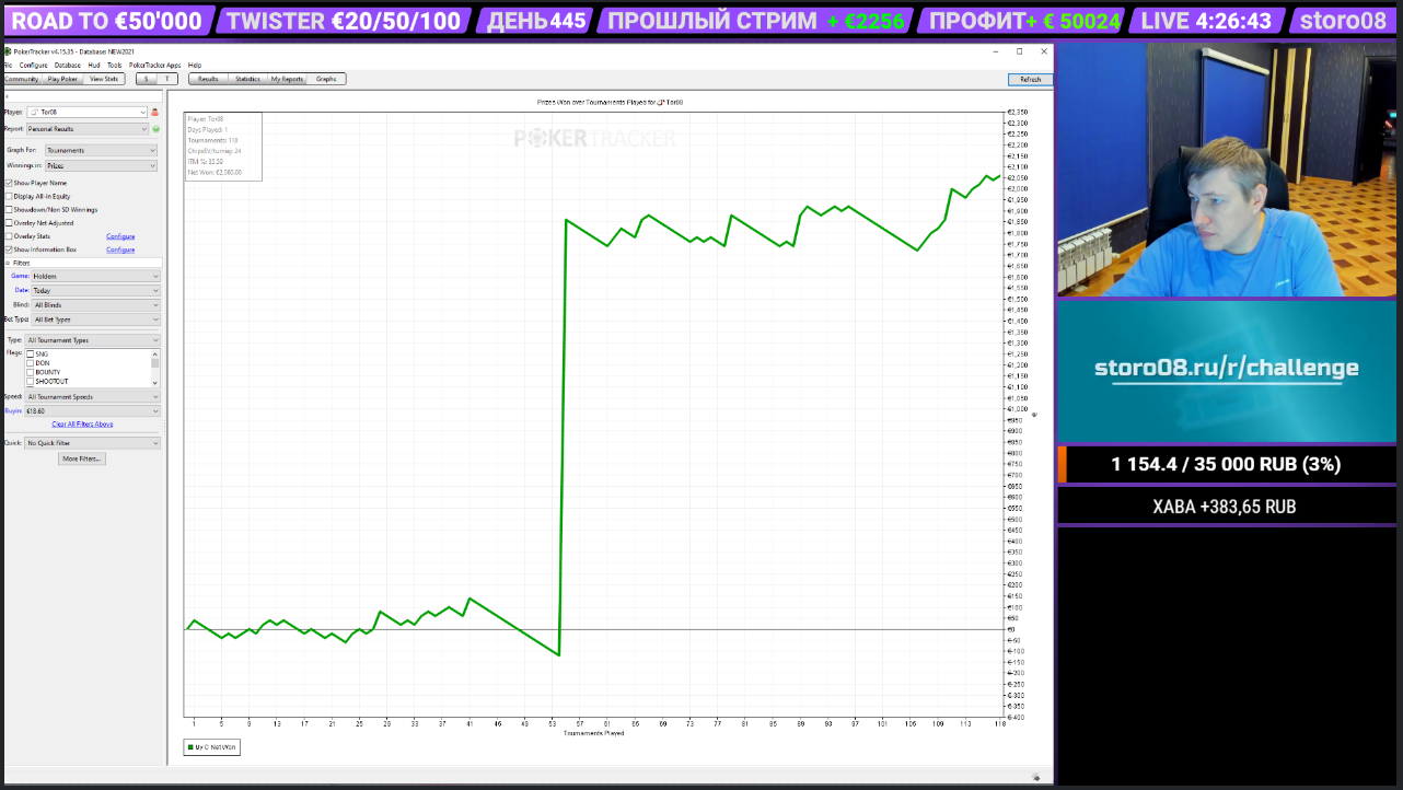 Средний доход за стрим € 112 Количество турниров за челлендж около 50000. (110 туриков в среднем за стрим Х 445= ~50k игр.