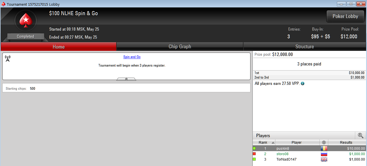 PokerStars - $95+$5|15/30 NL (3 max) - Holdem - 3 players