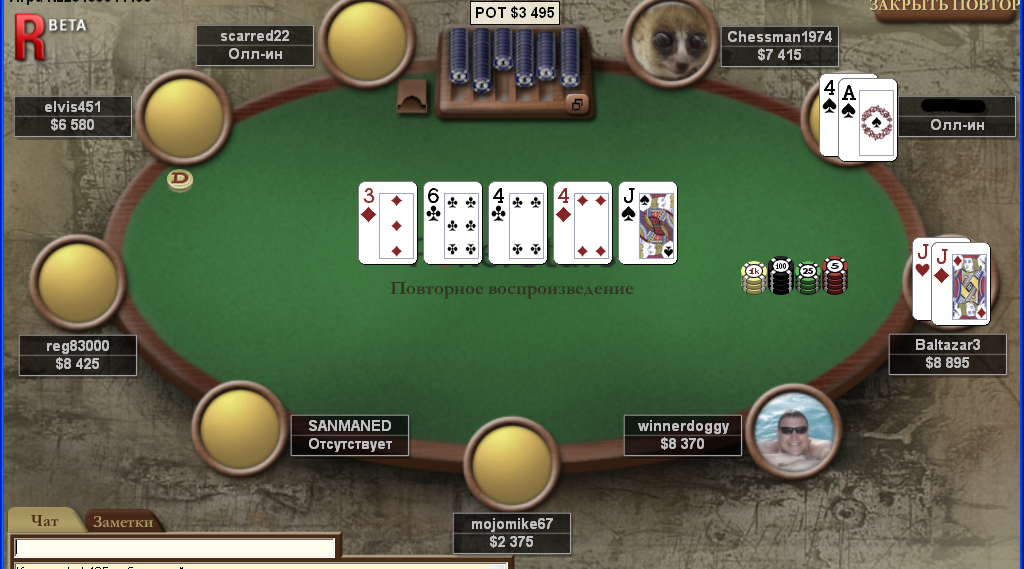 Вот оно: раннер-раннер каре. =)