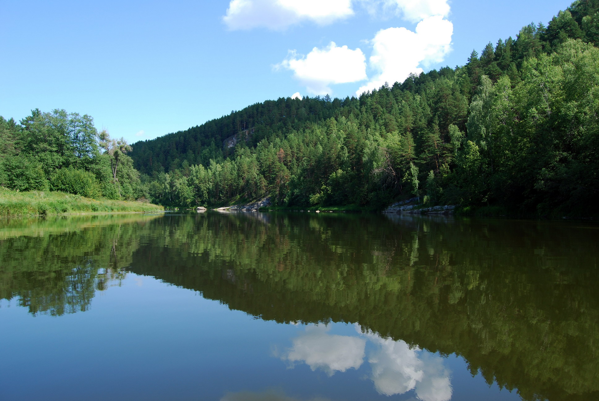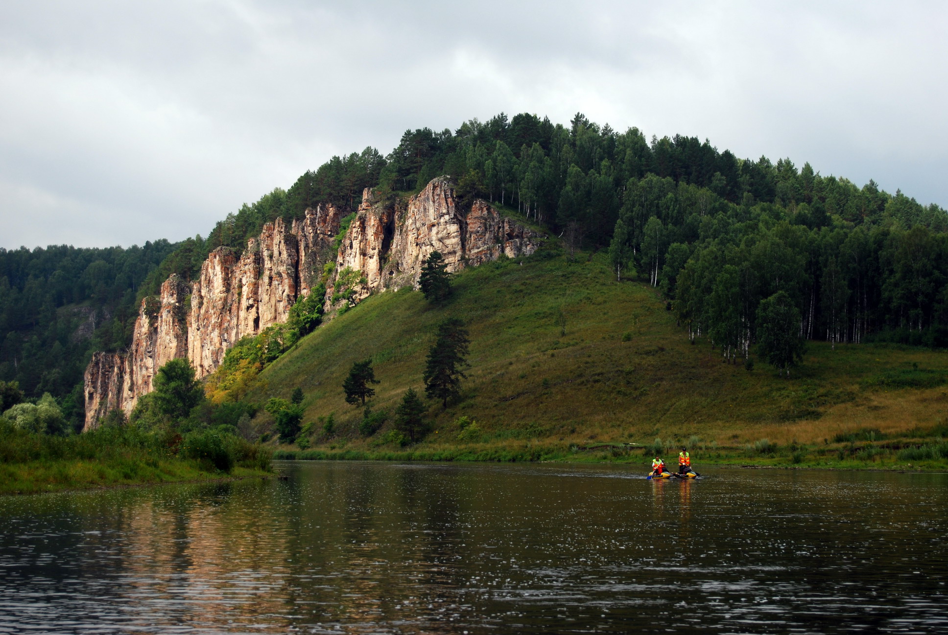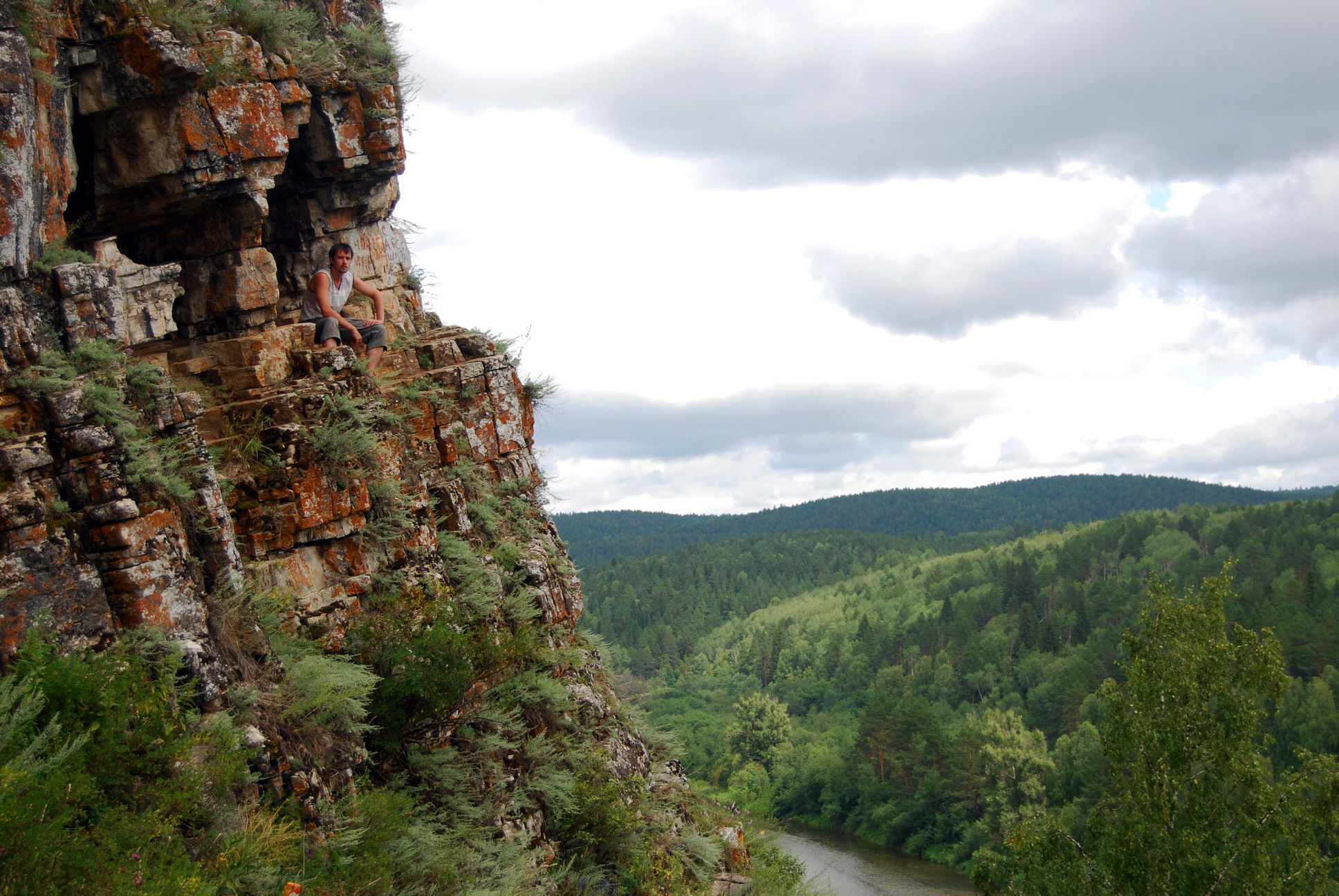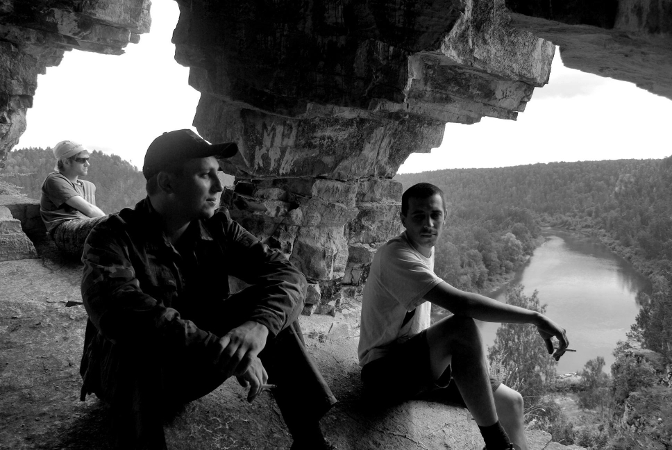 Насколько помню первая часть закончил на том что пьяным по туману плутал На следующий день проснулся на удивление в довольно сносном состоянии, предстояло много плыть, поэтому встали пораньше и погребли ![]() Ближе к обеду доплыли до пещеры названой в честь Салавата Юлаева, в Башкирии почти всё его именем названо В чём его заслуга перед башкирским народом большая загадка, насколько знаю был он обычным разбойником и в своё время присоединился к востанию Емельяна Пугачёва, после того как повязали Пугачёва, Салават сам что-то мутил в Башкирии, но в общем видно других народных героев нет, поэтому в каждом городе, обязательно есть улица и площядь Салавата Юлаева. по сравнению с другими пещерами которые мы раньше видели, эта была просто супер, вход на вершине скалы, шикарный "балкон" на входе сама пещера просто огромная, сначала несколько залов, местами очень низкие проходы, где на корячках, чуть ли не по пластунски надо пробираться, а дальше был длинющий триугольный тонель. Тонель просто нереально правильной формы, в сечении равностороний треугольник, со сторонами около 2х метров, практически не поворачивает, с одинаковым уклонов вниз идёт, мы по нему метров сто прошли, дальше совсем сыро и грязно было, решили обратно идти, а тонель в том месте чуток поворачивал и опять в даль куда-то уходил, на сколько далеко по нему можно было пройти хз, в общим красота нереальная Единственное что не понравилось, на входе все стены были исписаны, народ ну нахрена это делать, лично мне совершенно пох что "тут была Зухра" нахрена такую красоту всякими надписями портить. Вечером снова на "днёвку" остановились, место очень красивое попалось, ущёлье, ручей, поляна метров на пять выше уровня реки и к ней идёт вот такая тропка ![]() За день пока мы там стояли, тропку ещё немного облагородили, ступени камнями выложили, да и на всех другим местах где останавливались, старались в меру сил улучшить место , ну и в обязательном порядке весь мусор увозили, оставляли только консервные банки, которые в костре обжигали. В общем -берегите природу, мать вашу Днём душевно отдахнули, кто-то в ближайшие горы сходил, кто-то мячик попинал, кто-то порыбачил, в общем каждый нашёл занятие по душе, я из сухой сосновой ветки, вытачил витой "рог единорога" ближе к вечеру прогулялись до соседней деревушки, прогулялись это мягко сказано, да и насчёт ближайшей это с большой натяжкой сказано оказалось мы немного не в том месте остановились где планировали, и первый поход к деревне оказался не удачным, примерно 10км протопали и не нашли деревню, поскольку к баньке очень пива хотелось, я второй раз с братом пошёл в другую сторону, в итоге тоже не мало пришлось пройти, но кто ищет тот всегда найдёт взяв пак пива, через него палку продели и за такую импровезированую ручку двоём километров пять несли ![]() Вечером шикарная банька, разговоры у костра, одна из девчёнок была психолог, пообсуждали различные виды дивиантного поведения, поугарали и решили своя команду назвать "дивианты" поскольку очень многие вещи которые делаем, выходят за рамки общепринятого нормального поведения Ночью было очень чистое небо, огромные звёзды, видели кучу спутников, метеоритов, выпито было немного, поэтому НЛО, зелёных человечиков и т.п. замечено небыло следующий день был посвящён активной грёбле на стоянку встали только когд