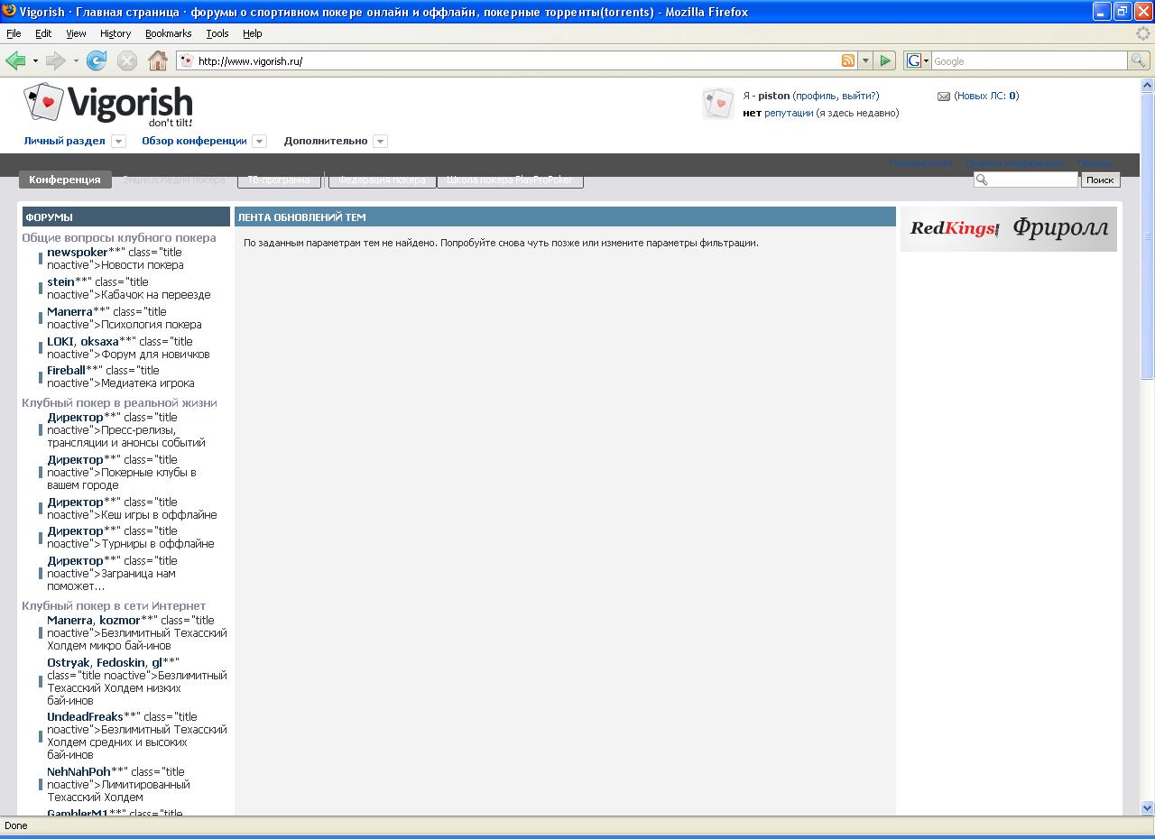 piston, у меня нормально в FF3.0.4 все. Что залогинившись, что нет. Покерные шоу и турниры на нашем трэкере