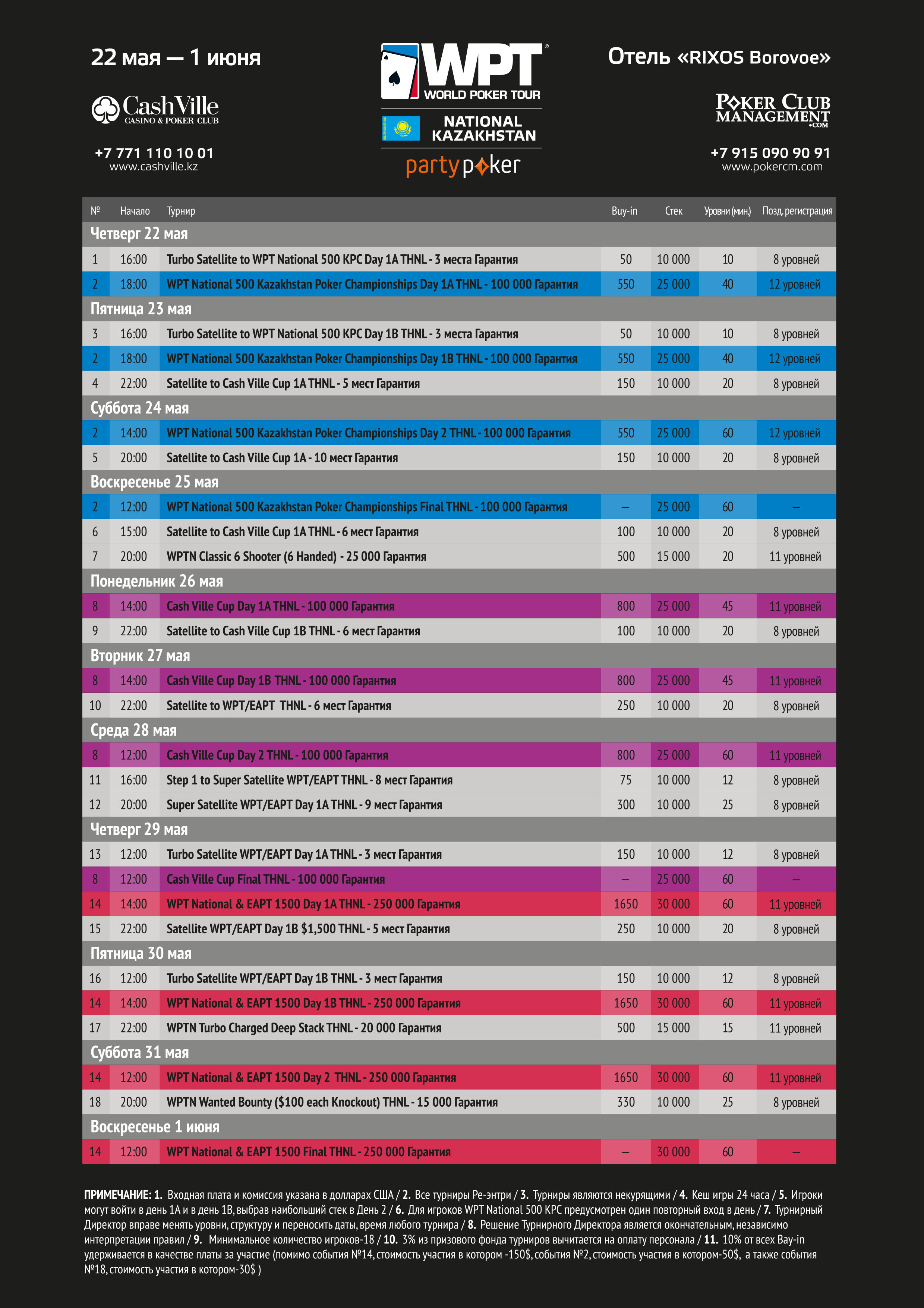 PartyPoker WPT National 500 Kazakhstan Poker Championship $100k GTD($500 + $50)22-25 мая