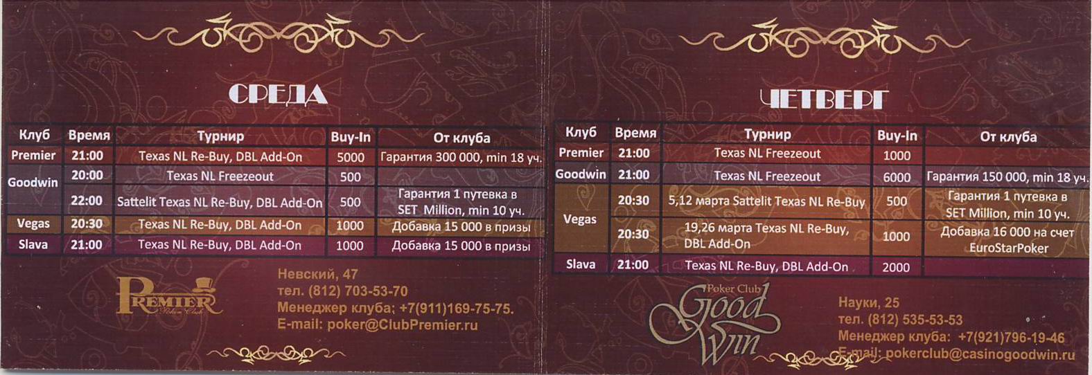 Бай-ины указаны в рублях. Приятно, что появились недорогие турниры в Премьере. Будем надеяться, что это не опечатка ![]() Покерные шоу и турниры на нашем трэкере