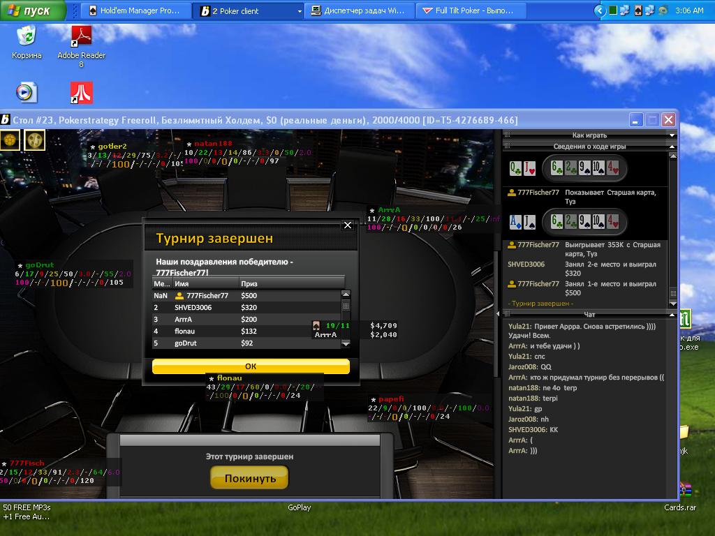 Так же расскажу вам о своих небольших турнирных успехах (МТТ играю 1 раз в месяц исключительно ради удовольствия)