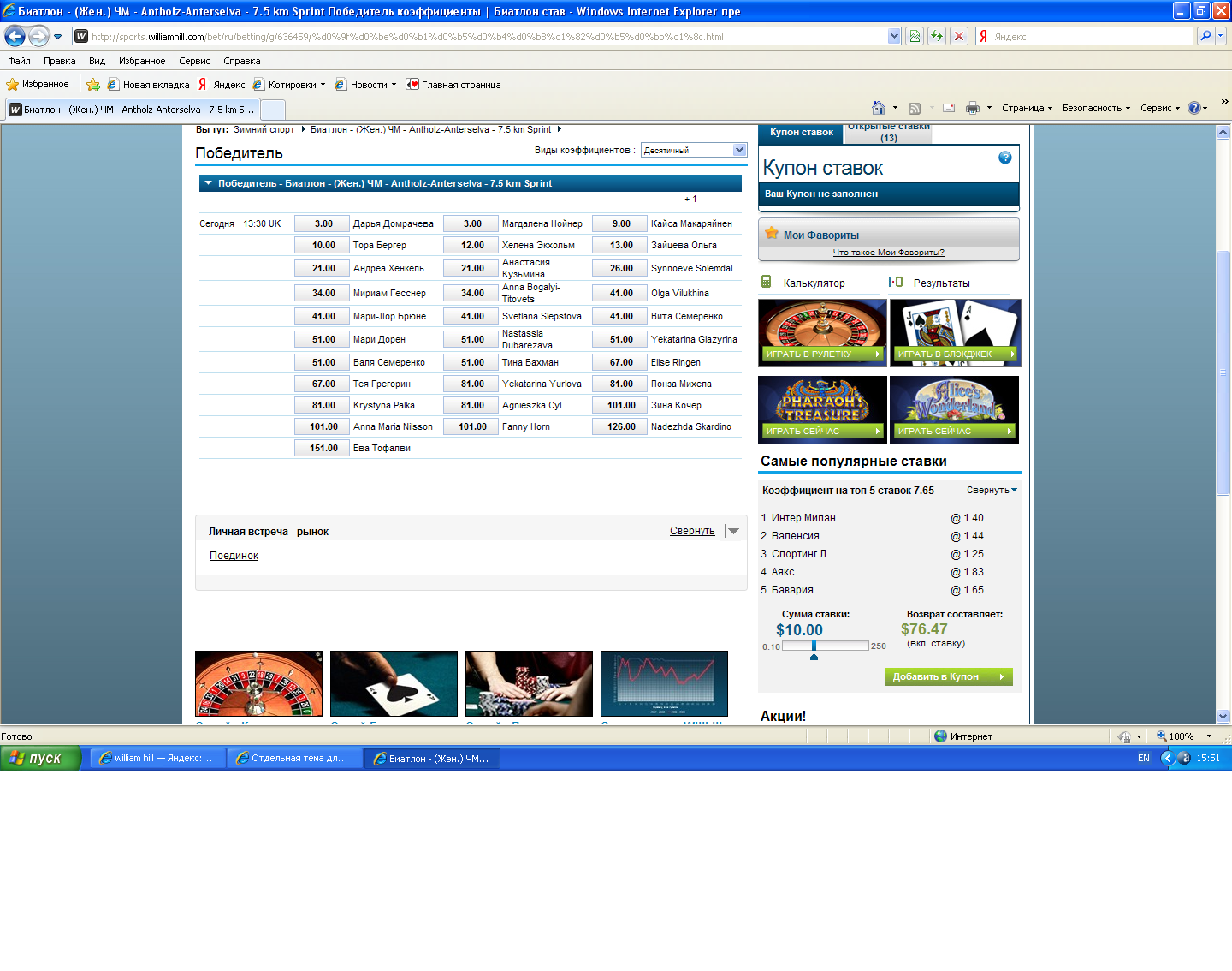 Мне нравится победа СКА, кэф 1,4, думаю для экспрессика в самы раз. А также думаю о ЦСКА, Льве и Минчанах...тут еще не определился. ЦСКА на ходу, Барсы в последней игре вообще не радовали...думаю у армейцев хороший шанс взять очки. Лев бился на равных с салом...так что против нефтехимика думаю можео поставить победу с учетом ОТ и Б. Ну а Минск, вообще на подъеме сейчас...разрывали весь матч барсов у себя, не повезло выйграть. Сейчас же к ним приехал Юлаев...хз, охото втыкнуть также как и на Лев. Митем, Лева, Док и другие...не проходите мимо!) Последний раз редактировалось Achinsk24 19 янв 2012, 14:26, всего редактировалось 1 раз.