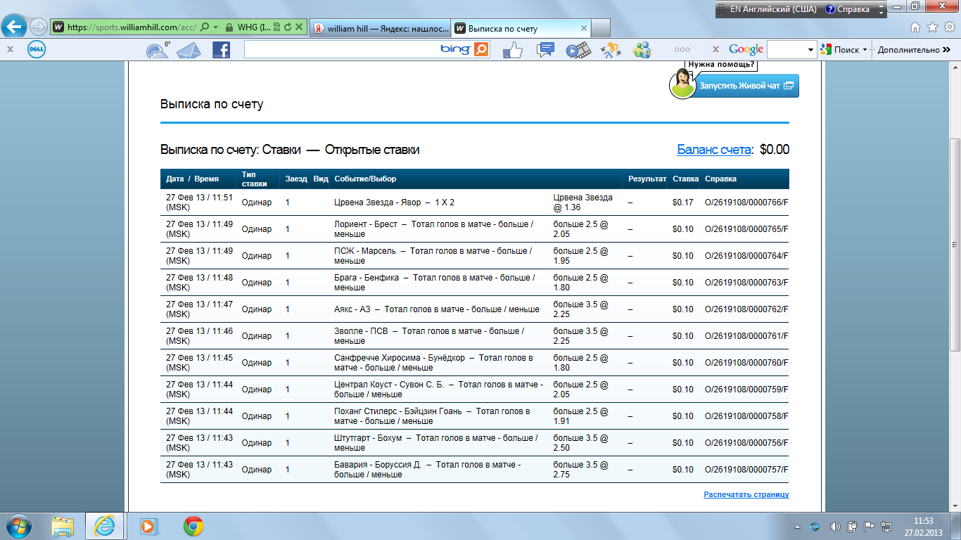 Владимир-а у меня только-только первая ставка сыграла.Уже в дополнительное время