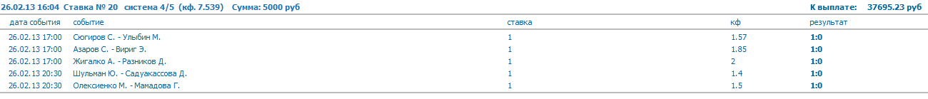 А я вчера здорово проигрался-2 ставки из 11 только зашли.Сегодня в лайве поотбиваться попробую.Ну и пару экспрессов поставил: