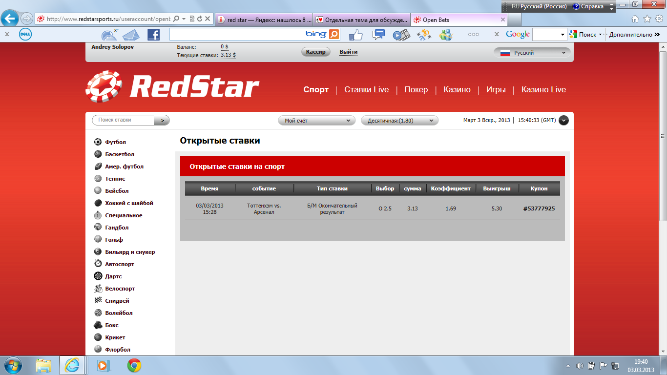 Пушнул на Бетис по лайв с 0,отбил минус наверно..