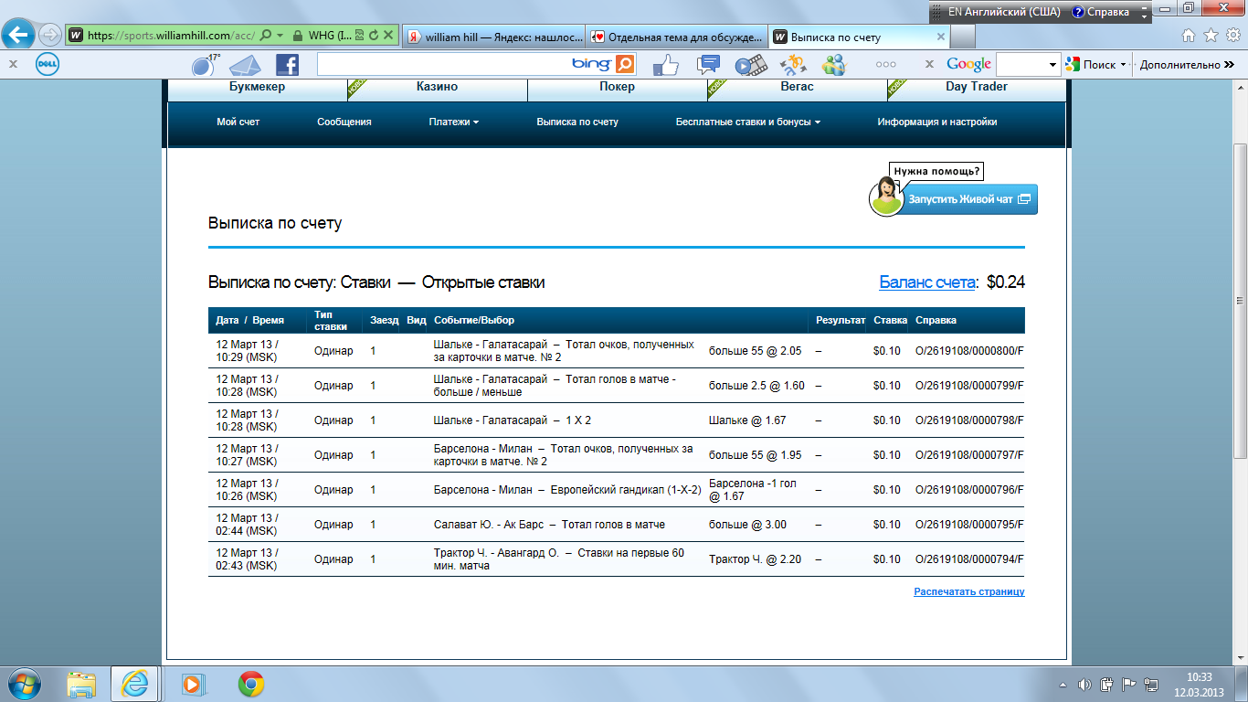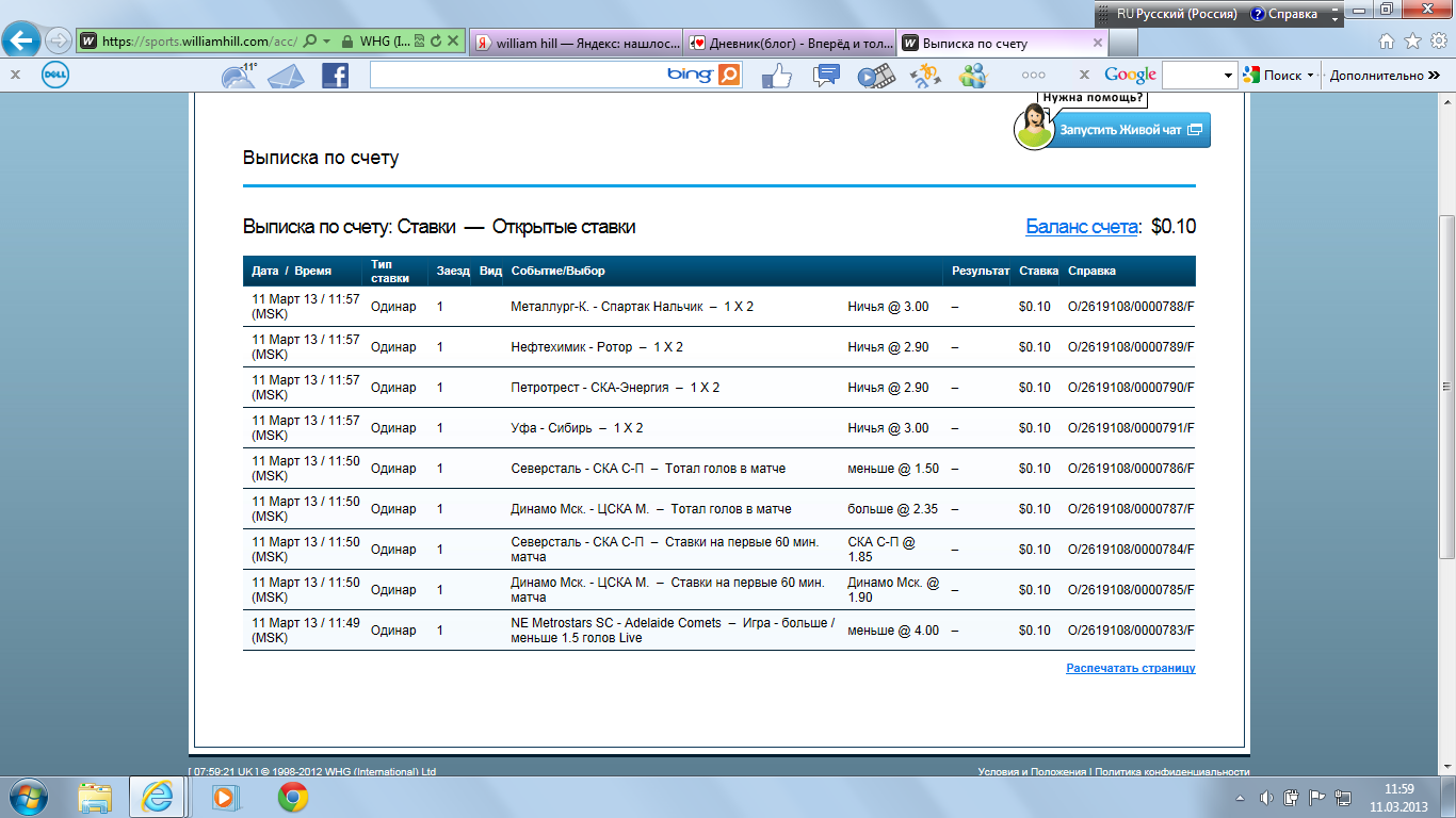Северсталь-ска..думаю вот:1 гол c 1 по 10 минуту за 2...и Тб 5.5 за 2.2/поставил тб 5 Динамо -Цска..тут думаю победа динамо и тб 4.5 Последний раз редактировалось LOUIS 11 мар 2013, 18:09, всего редактировалось 1 раз.