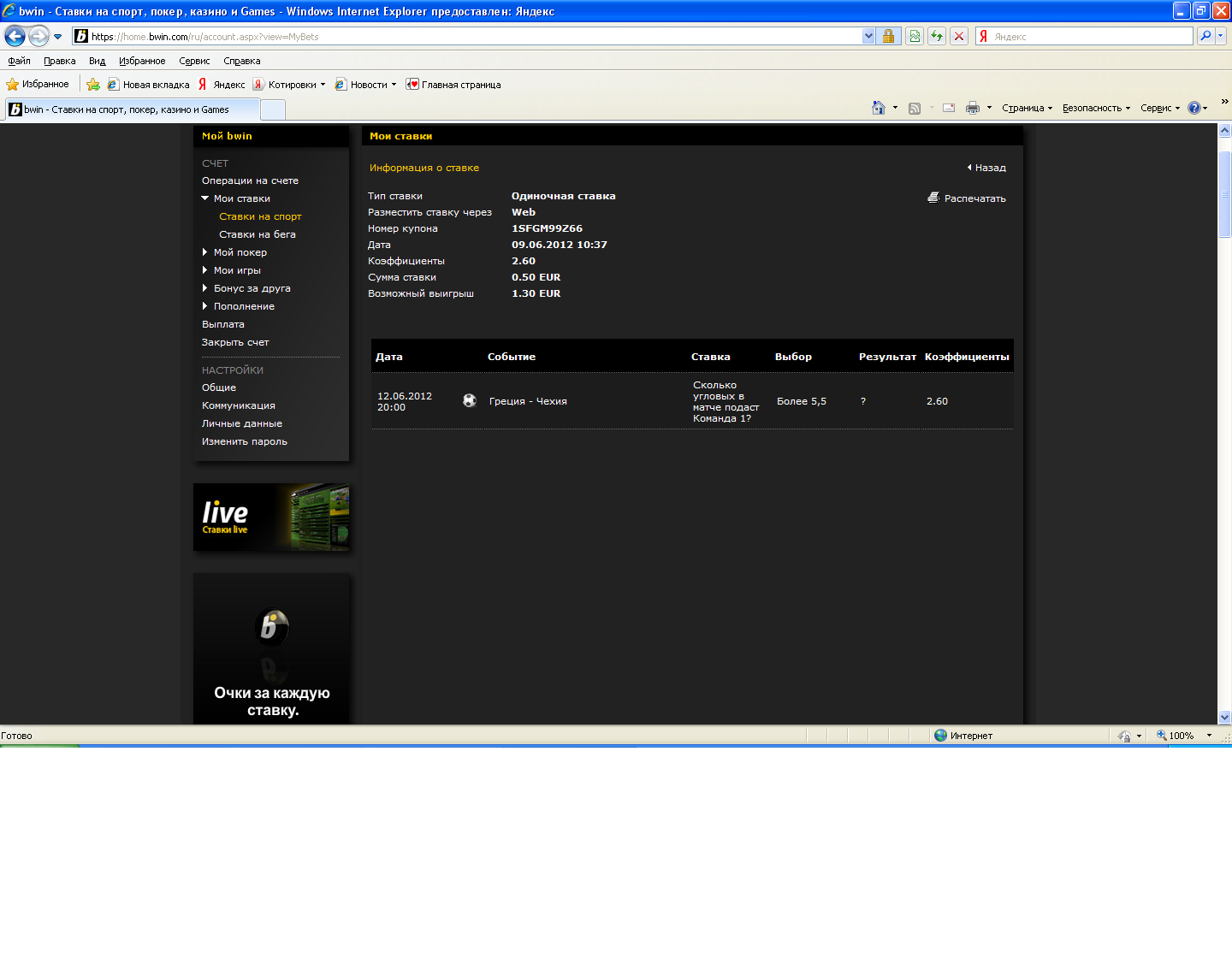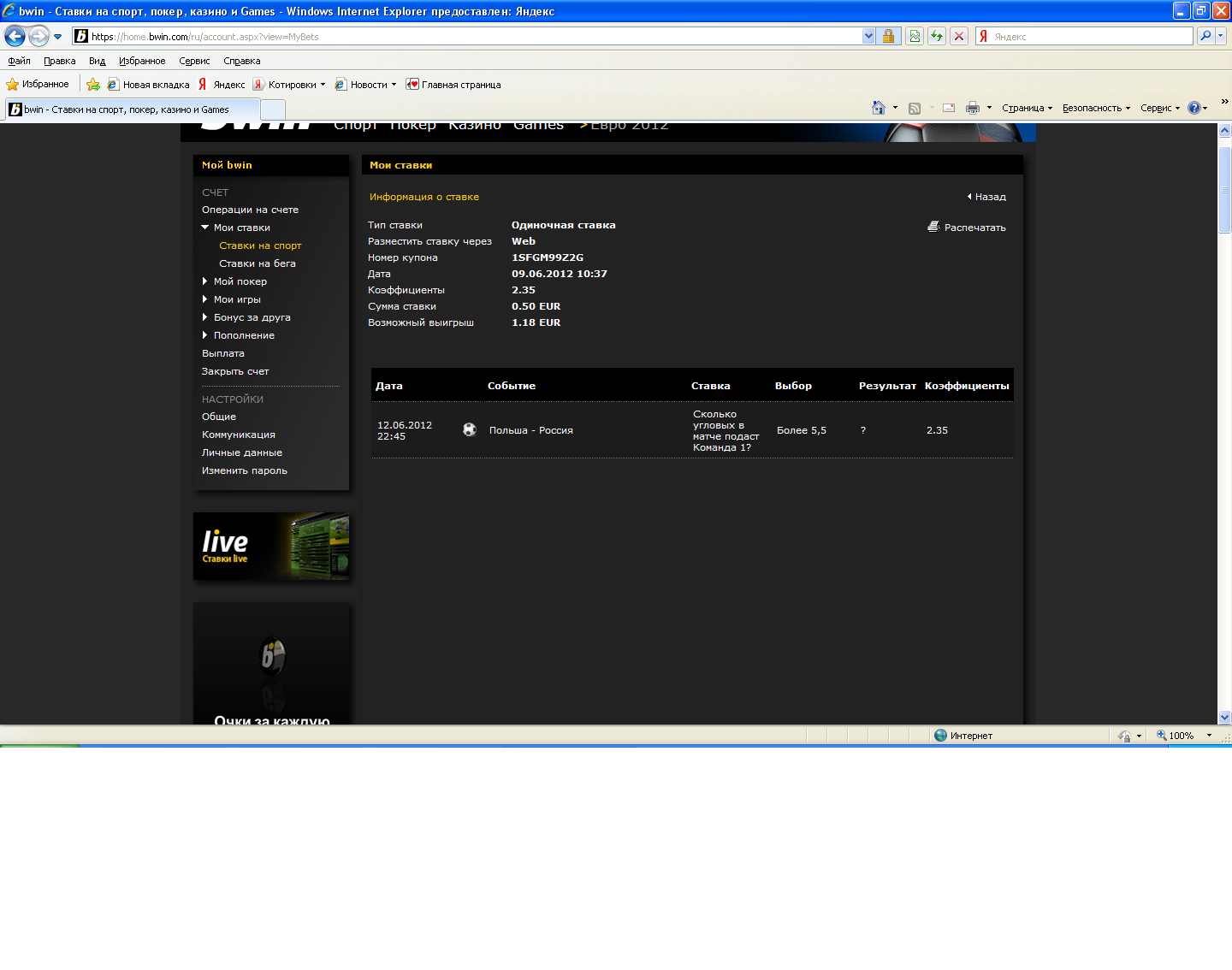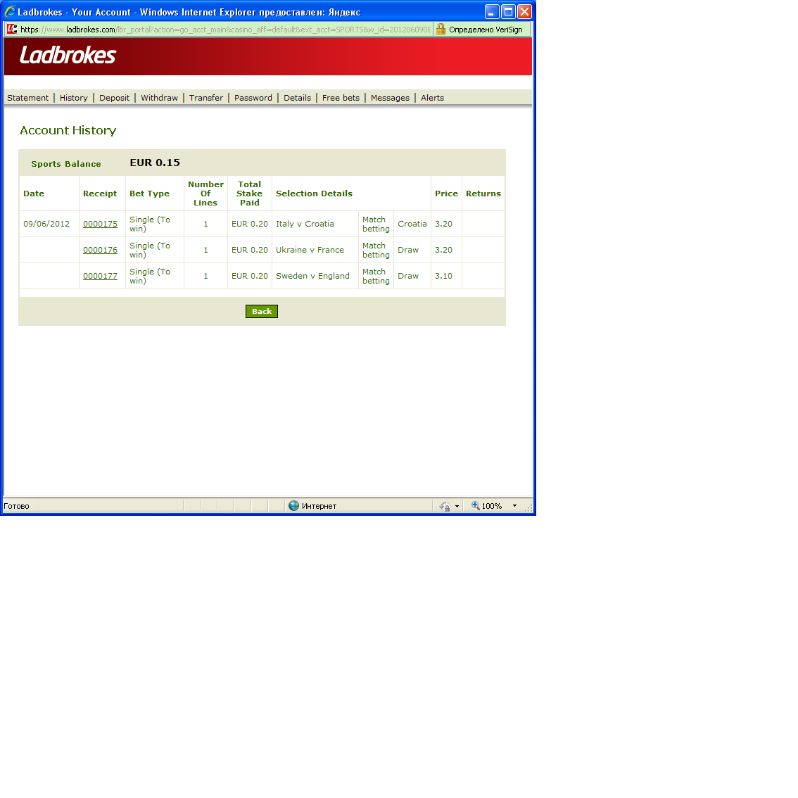 Пропущу один матч-Испания-Ирландия.И мыслей насчёт них нет никаких,да и денег в Лэдброксе недостаточно.Может быть потом и доставлю.