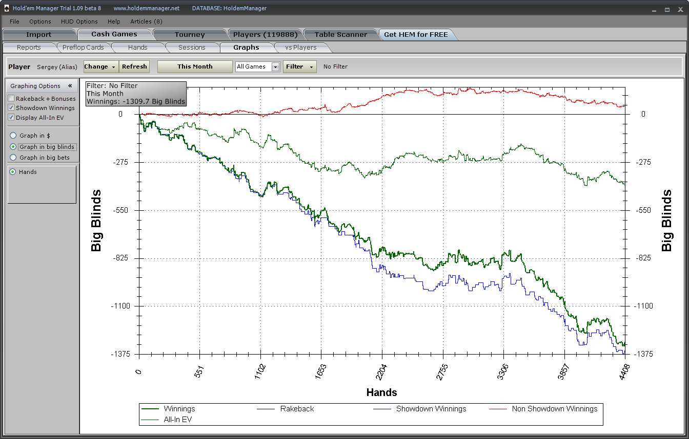 А следующие пять раз ты будешь в плюсах по раздачам, но все тупо не ответят, и по банку ты будешь только при своих. Это карты.