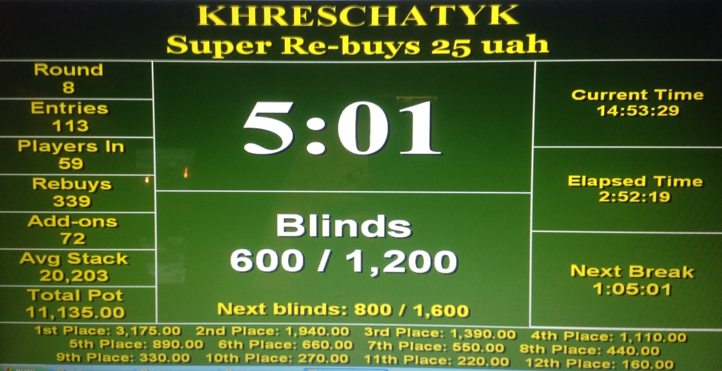 Закончилась ребайная зона в турнире Super Re-Buys 25 с гарантией 10 000 грн. И вот что мы имеем.