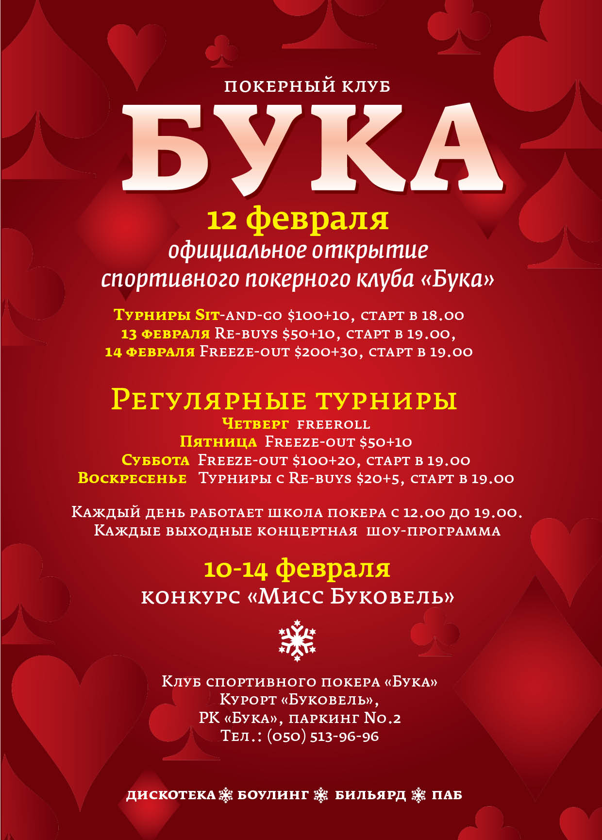 В новогоднюю ночь откроется новый покерный клуб Бука на горнолыжном курорте Буковель