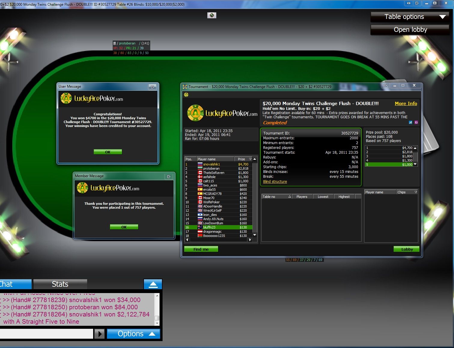 Hero wins 23,400.00