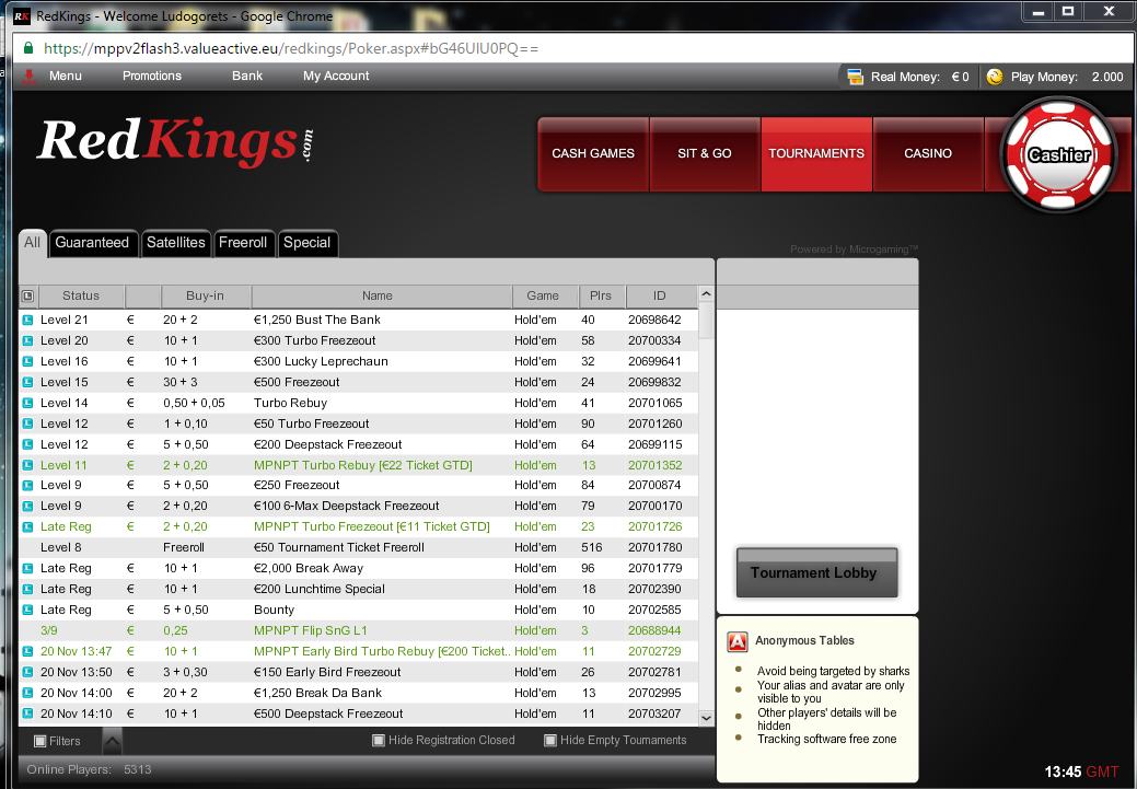 Одна из главных "фишек" здесь, аналог spin & go - Fish Party, с прогрессивным растущим джекпотом, представлены лимиты: 1€, 5€, 10€, 20€, 50 € Как многие уже знают, полюбившийся многим нашим пользователям своей заботой о игроках, некогда ведущий рум Ongame RedKings, в связи с закрытием сети, переехал в самую крупную покерсеть - микрогейминг (MPN), которая в данный момент занимает 7-ое место по pokerscout: