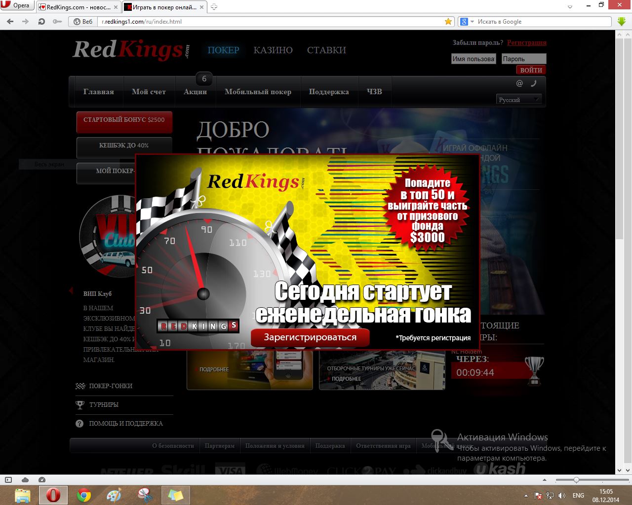 Спешите зарегистрироваться по нашим ссылкам в руме и не пропустить халяву, совместные акции и конкурсы! Регистрация по ссылке: Жмём здесь! Установка клиента: Загружаем клиент тут! Часто задаваемые вопросы. Денежные переводы возможны через подарочные ваучеры. Игрок, отсылающий деньги, должен иметь как минимум 100 игровых очков у себя на счету. Для получателя денежного перевода количество заработанных очков значения не имеет. Чтобы создать/ воспользоваться подарочным ваучером, необходимо пройти на страницу Акций в раздел "Подарочные ваучеры" и далее действовать по инструкции. Внимание игрокам из России! Почти все ссылки блокируются в РФ, зеркала менеджмент рума перестаёт создавать, так как у них появились определенные риски. Совет всем игрокам которые не могут зайти на сайт RedKings: пользоваться VPN/прокси (только не Германии и не Англии). Лучшими странами для выбора VPN являются, как пример, Швеция, Финляндия, Норвегия. Можно воспользоваться отличным VPN-сервисом, описание которого есть у нас на форуме Последний раз редактировалось Masha_RedKings 17 июл 2014, 17:20, всего редактировалось 8 раз(а).