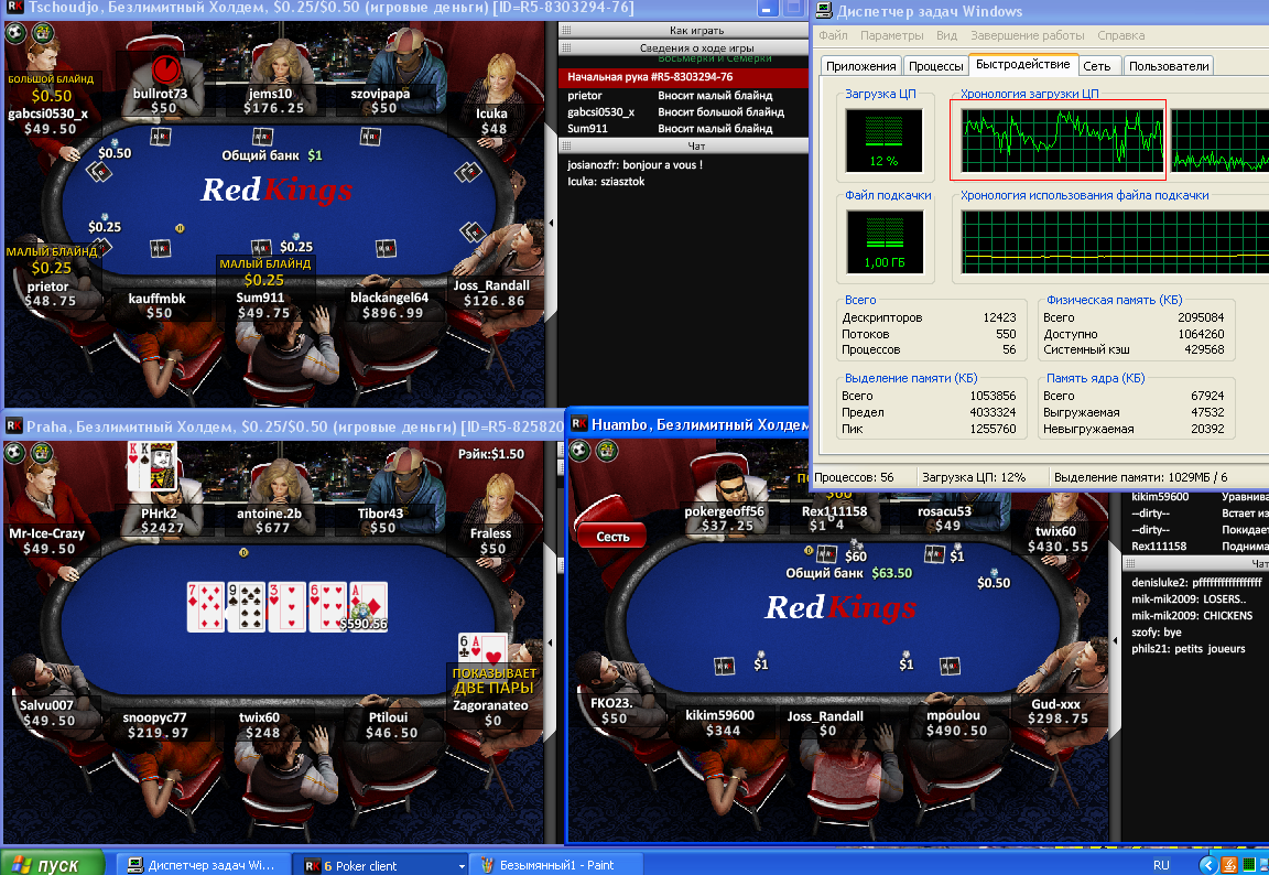 Очень большие тормоза уже на 5 столах - можно ли это исправить? Видел, как советуют использовать Ram Disk, но, видимо, те рекоммендации устарели - там говорят создавать файл статистики онгейма на виртуальном диске - но в меню Red Kings вообще нету подобного раздела Statistic, handhistory сохраняется в папку Document&Settings. Пробовал во время игры устанавливать высокий приоритет клиенту и низкий Холдему, но это ничего не даёт.