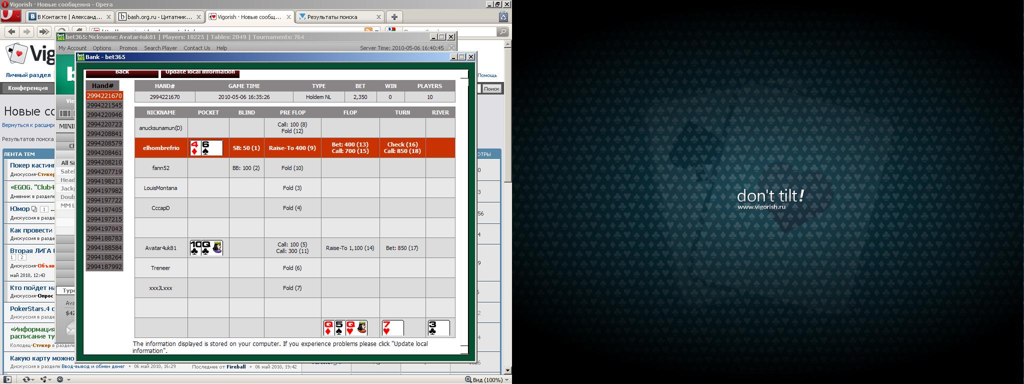 Вот сегодня парень с ником best623623 сыграл за двумя столами со мной 150 рук. У него статы 54/6 и винрейт за 26k рук -33 bb/100. В приведенных ниже раздачах он был победителем. NL Holdem $0.10(BB) Replayer SB ($14.66)
