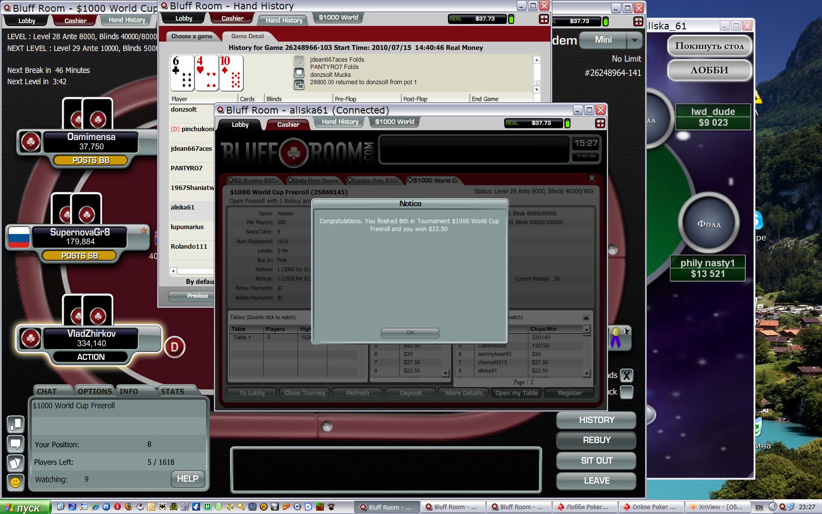 Меня зовут Антон и я новый менеджер Bluffroom! Рад сообщить вам, что начиная с сегодняшнего дня вы будете обеспечены качественным сервисом, в т.ч. поддержкой игроков. Я постоянно доступен по электронной почте ru.support@bluffroom.com (самый удобный вариант) и в скайпе bluffroom-russia. Приносим свои извинения за неудобства, с которыми вы столкнулись в последнее время! Мы сделаем все, что в наших силах, чтобы подобного больше не повторилось. С уважением, Антон. Последний раз редактировалось BluffRoom 12 авг 2012, 01:35, всего редактировалось 133 раз(а).